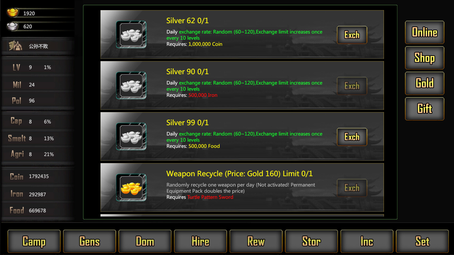 Battle system: The more battles you challenge, in addition to the higher daily silver income, you will also have the opportunity to recruit more top-quality generals