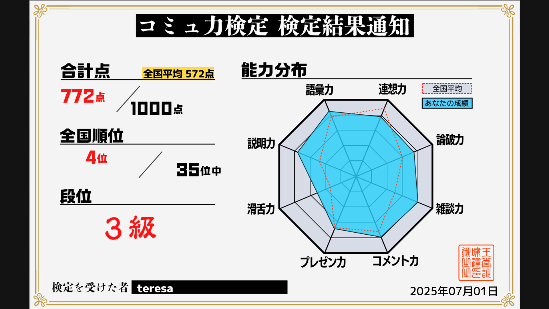 You can compare your scores in each skill area with the national average to see your strengths and weaknesses.