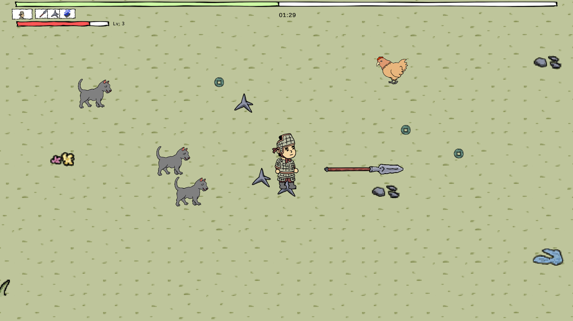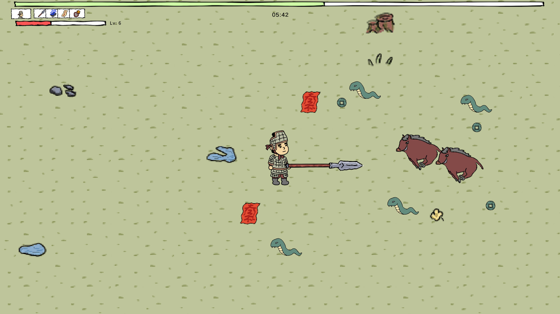 1. At the beginning, the soldier controlled by the player wields a spear, and through upgrades, they can acquire up to 6 different weapons, each with unique attack styles.