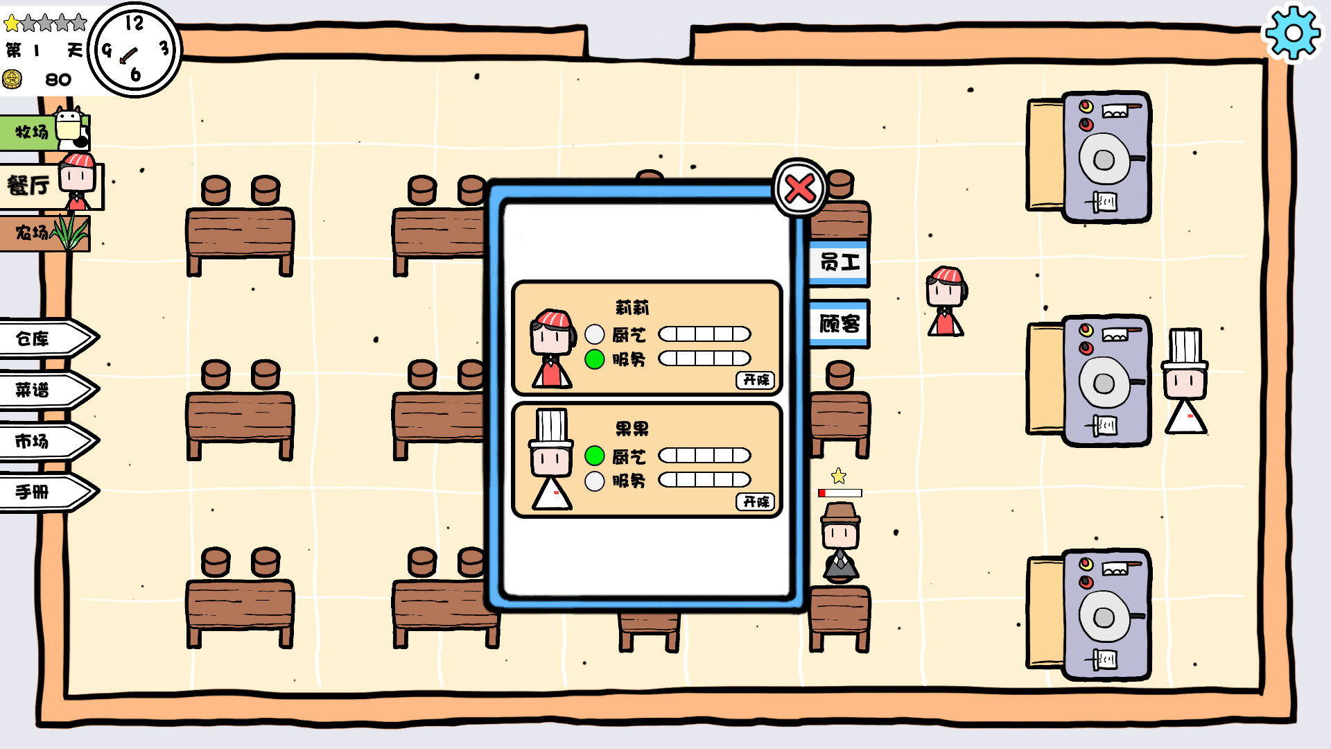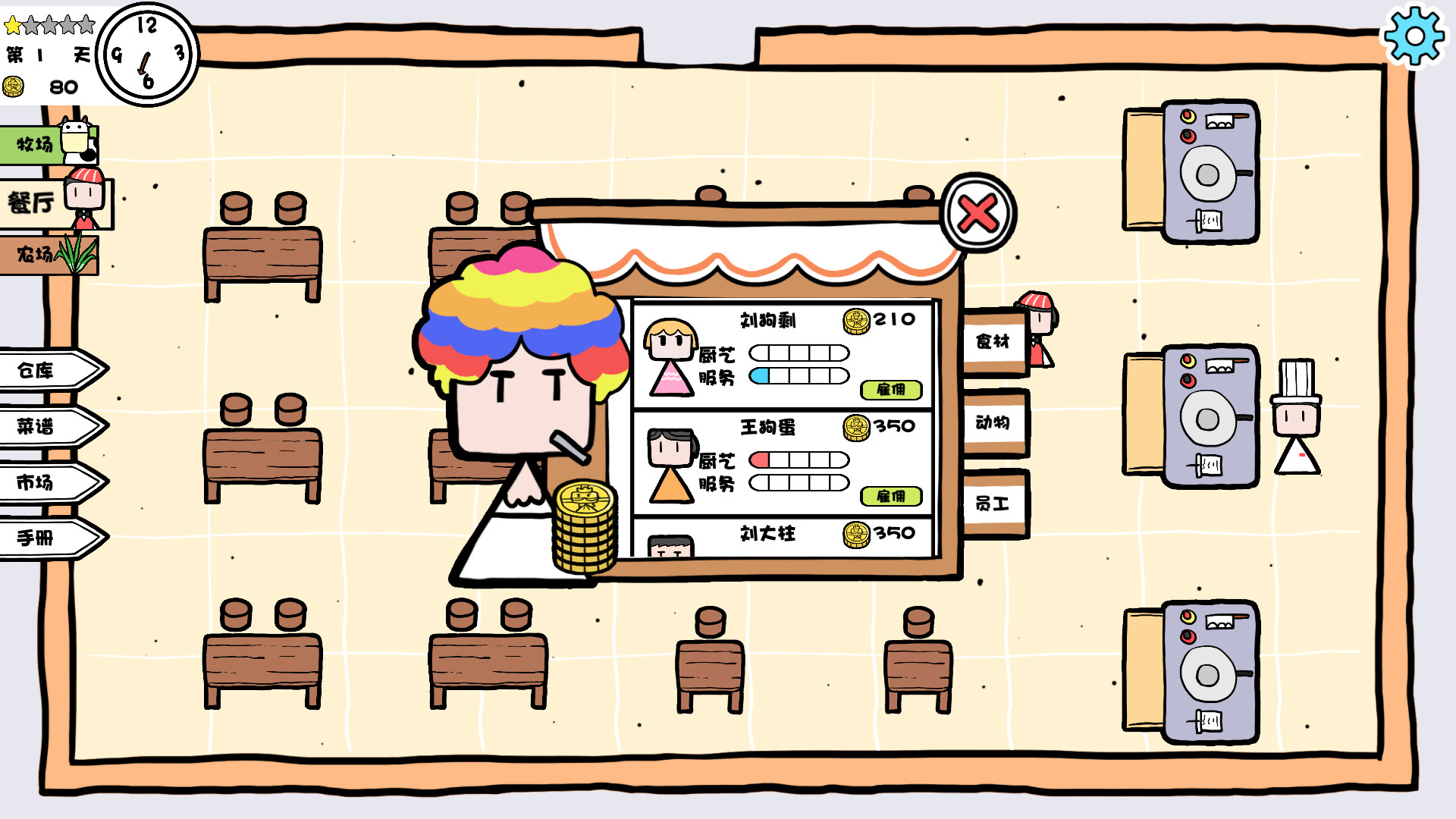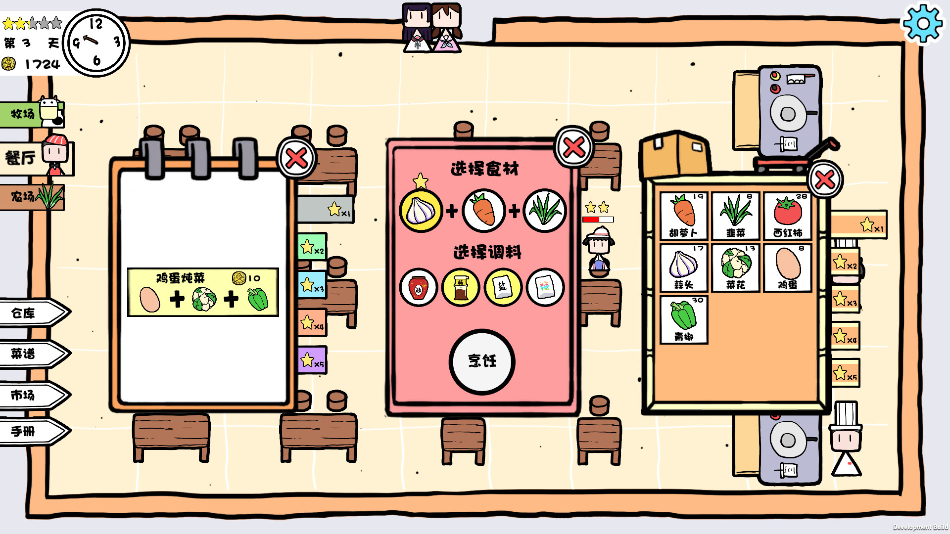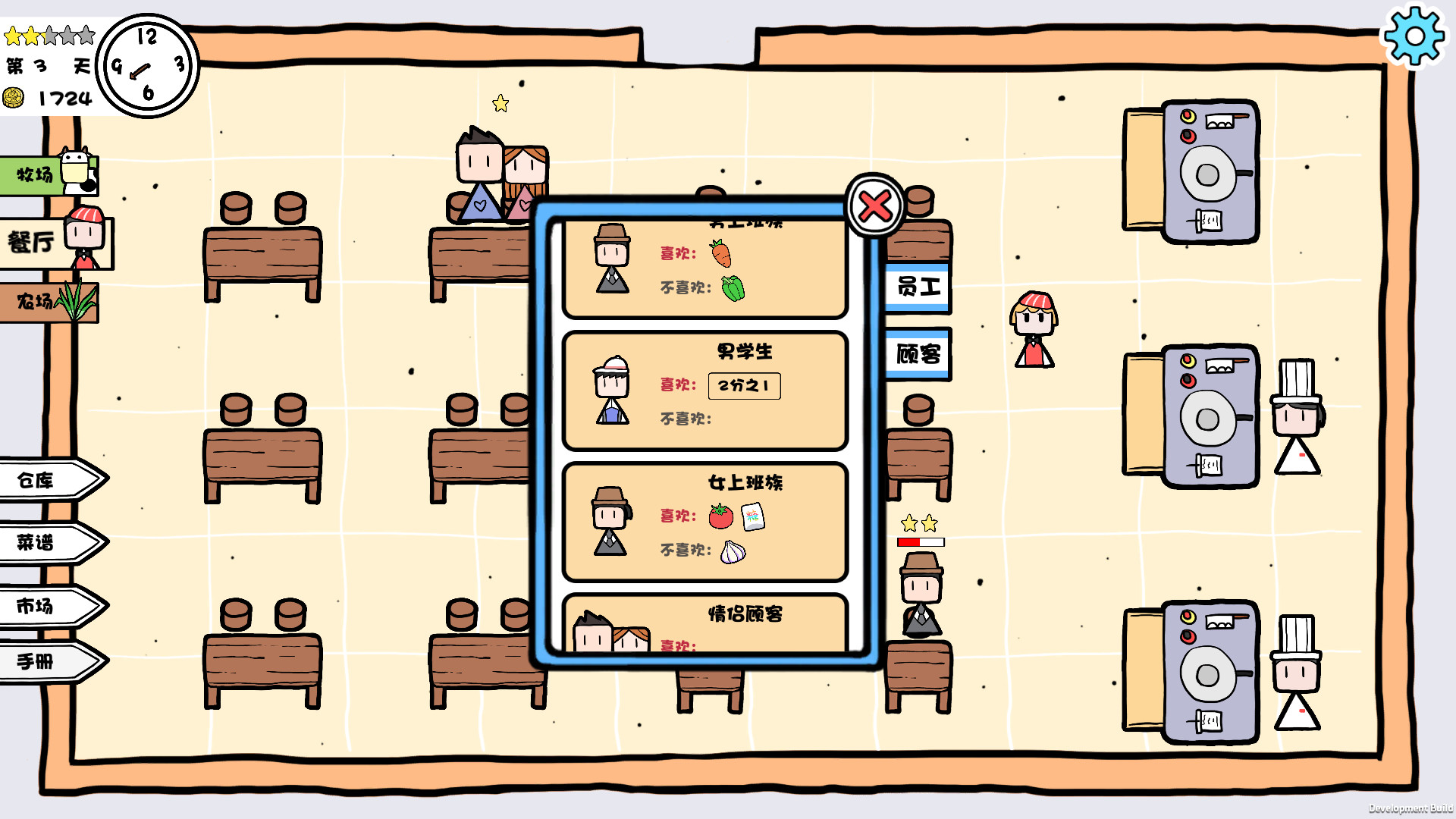 这是一款你从未玩过的餐厅模拟游戏!高度自由的做菜玩法,创造和探索菜谱,昼夜系统结合了农场牧场的经营养成,顾客口味偏好多种多样,还有更多奇葩内容等你探索