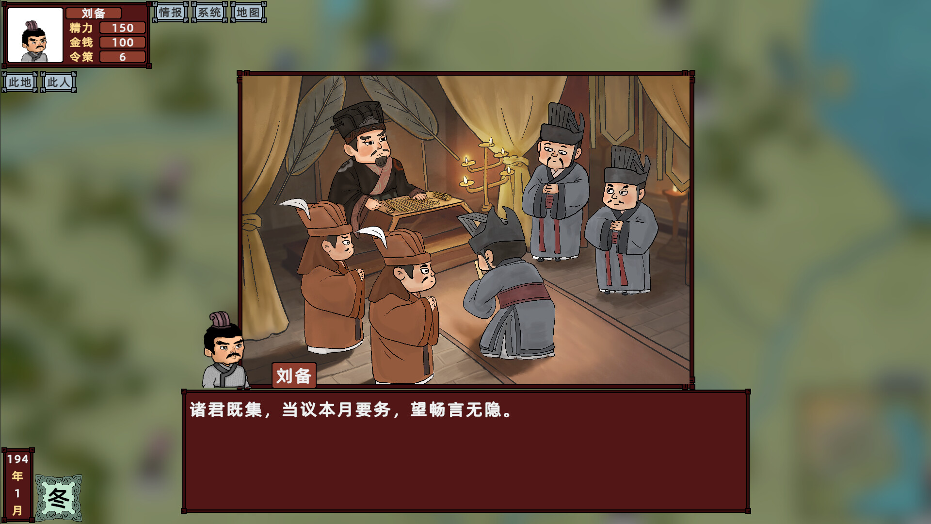 This is a turn-based strategy role-playing game set in the late Han Dynasty in 192 AD. You play as a prince, a minister, or an outlaw in troubled times. Your goal is not limited to unifying the world, but more importantly, your choices in this troubled time.