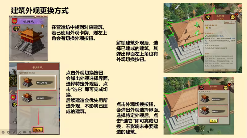 建筑外观使用方式: