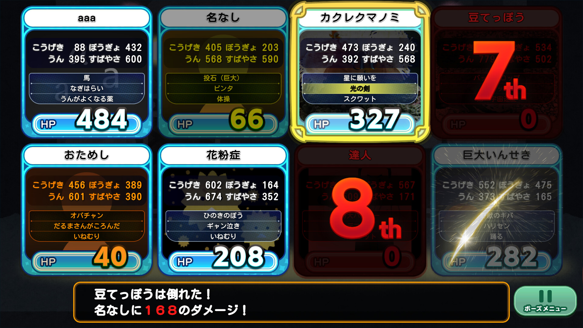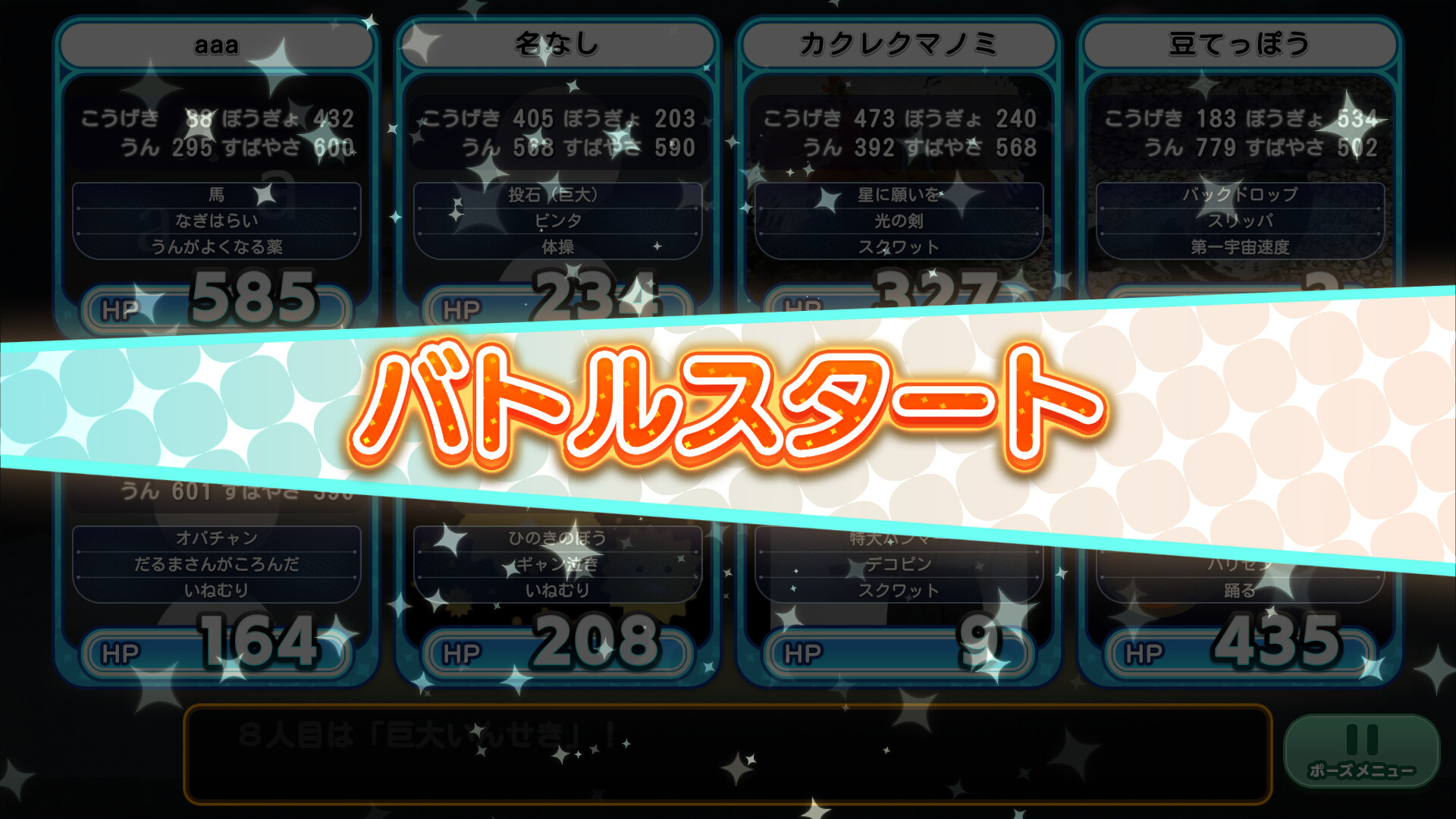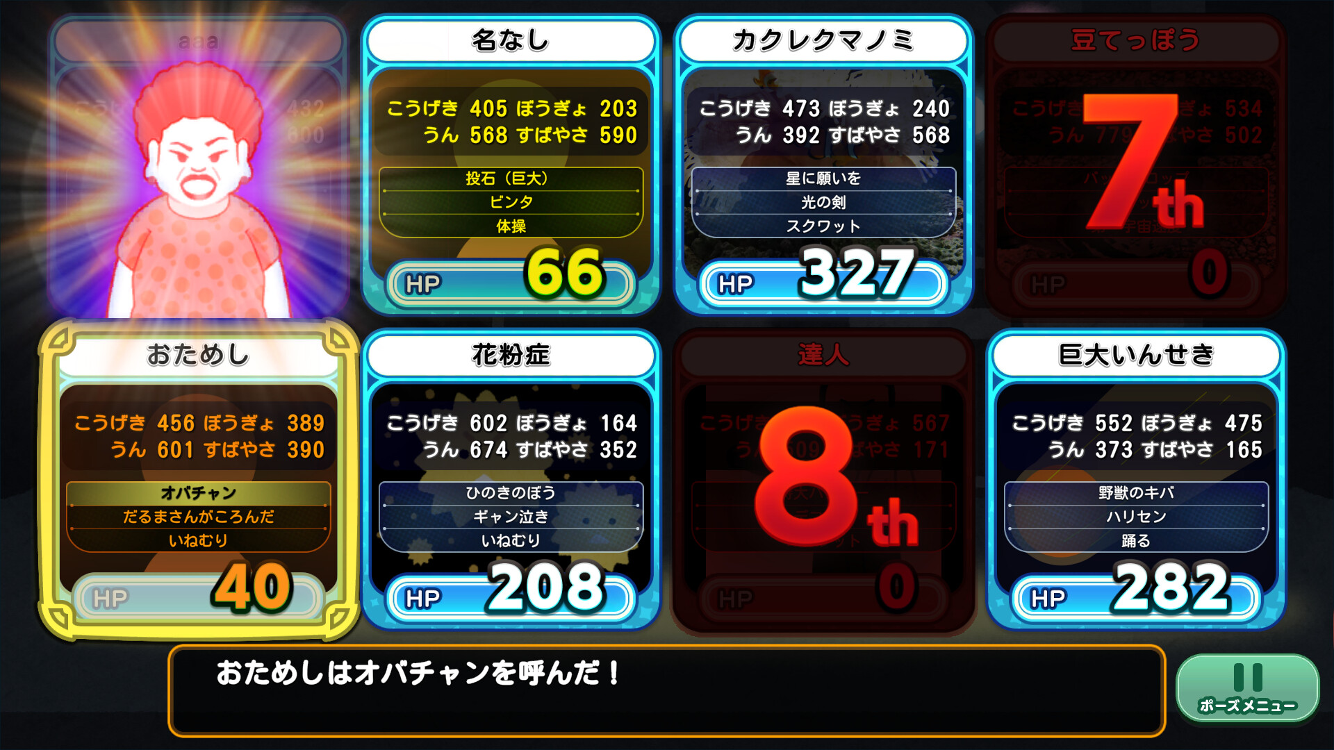 Based on the “Onamae” entered by the user, the strength and specialties are automatically set and the battle begins. You will not know what kind of battle the “Onamae” will fight until you try to battle with it.
