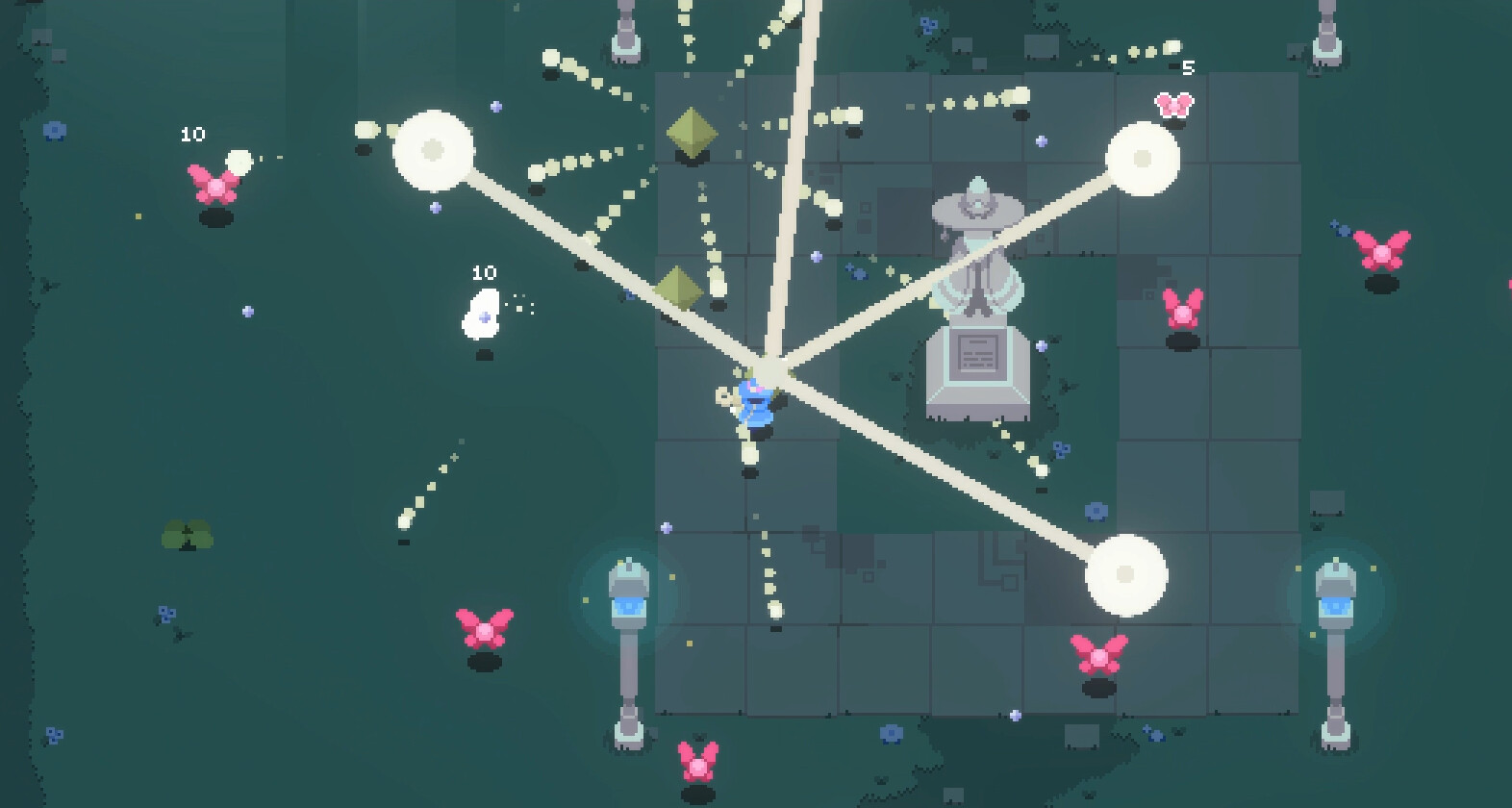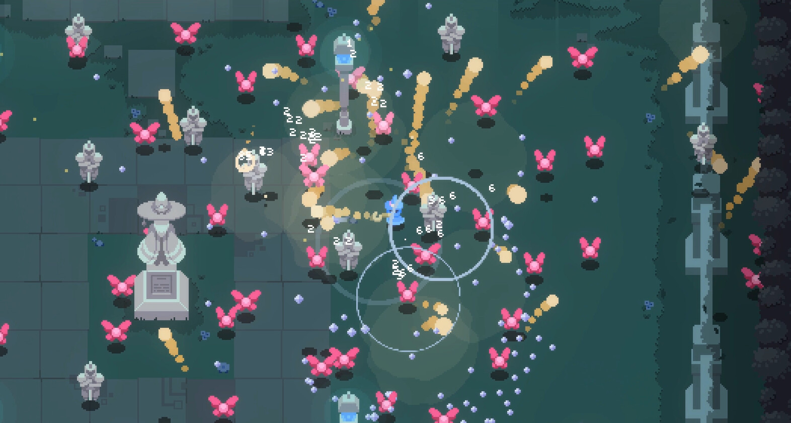 Spell slinging action roguelite: Dodge waves of enemies and projectiles to survive and improve your magical spells.
