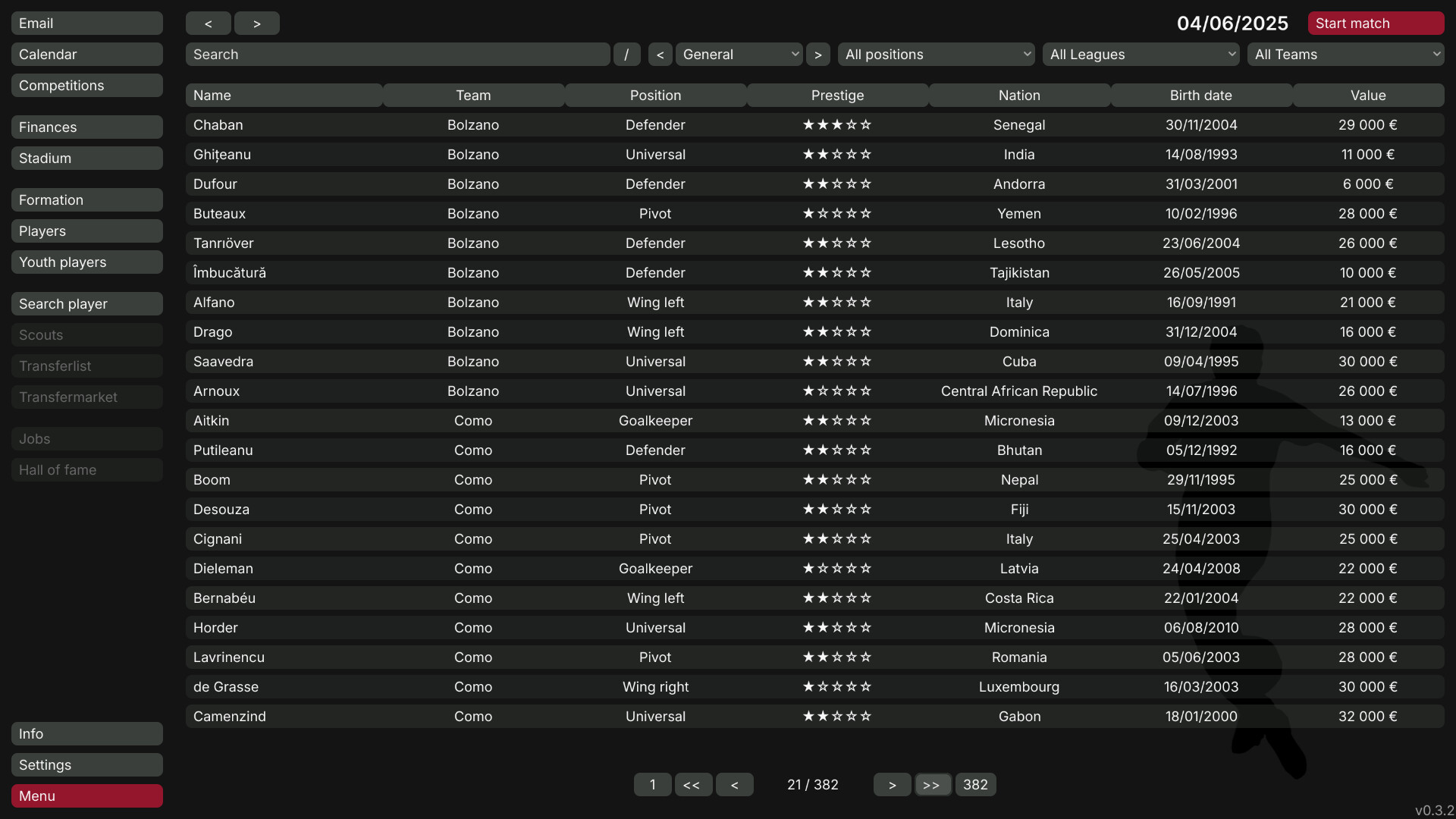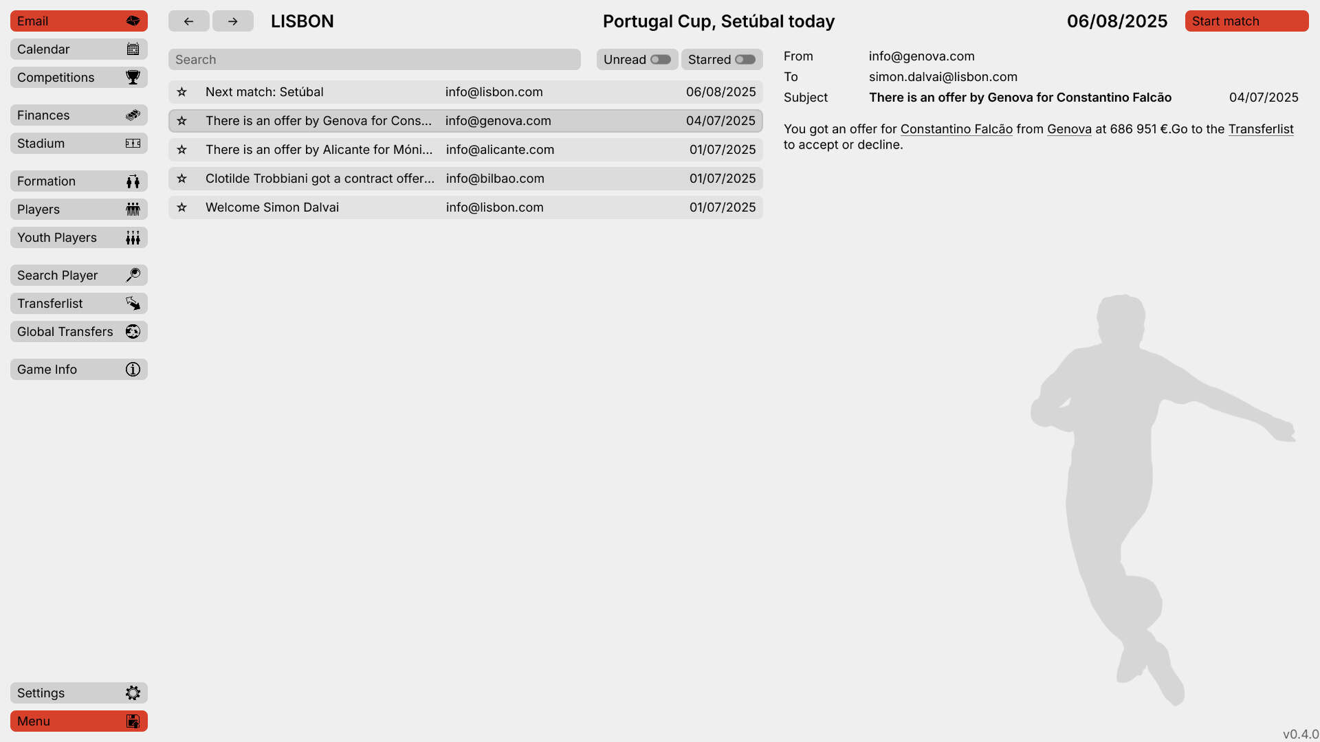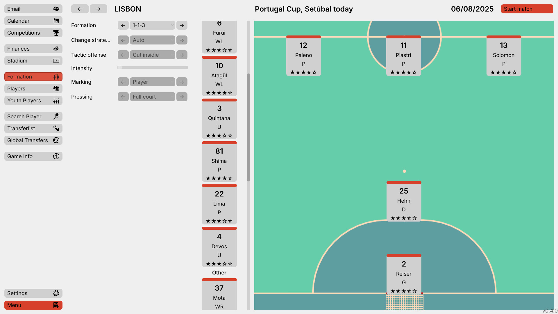 An open-source Futsal team-management game. Build a world-class Futsal team, find new talents and a tactic that fits your play style. Become the best Futsal Manager and win all competitions on national and international levels.