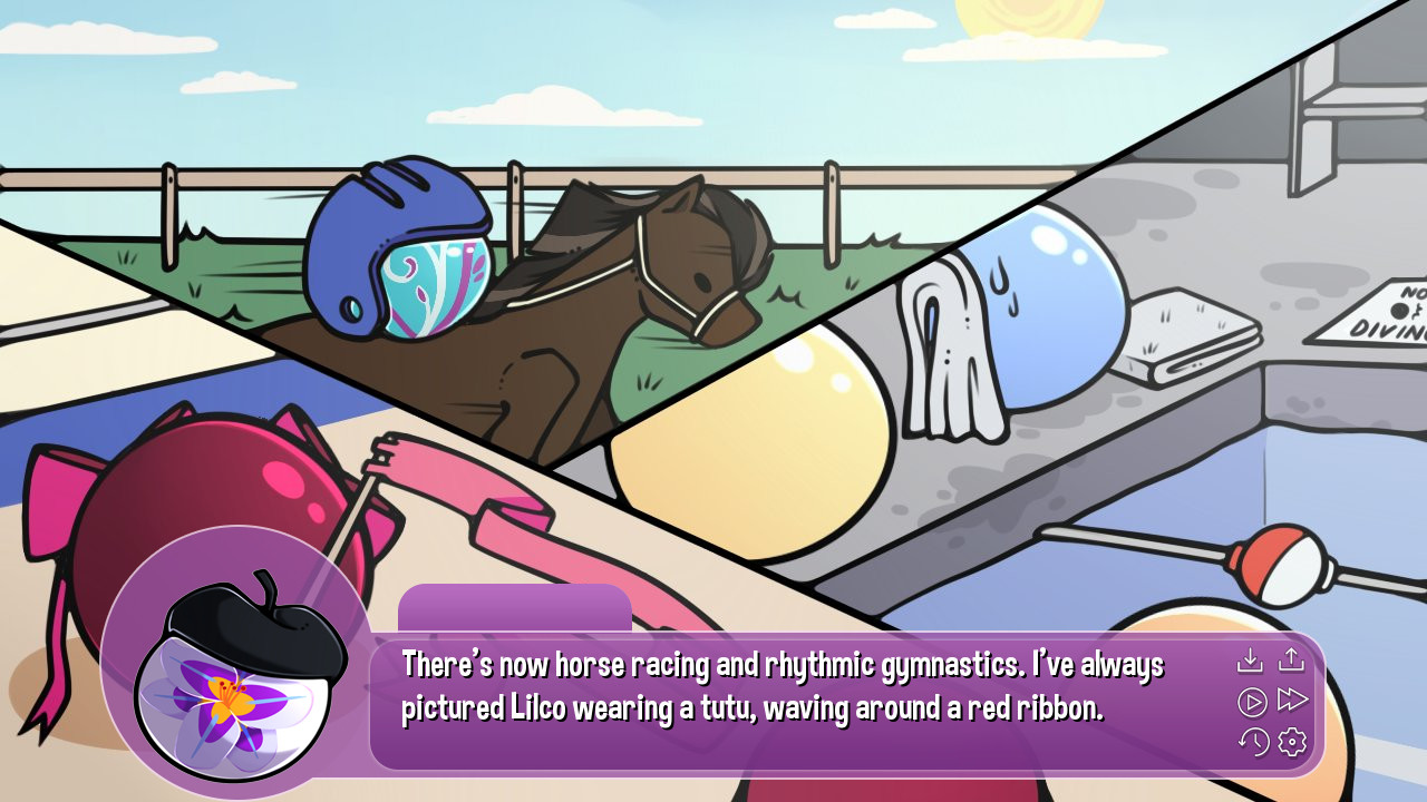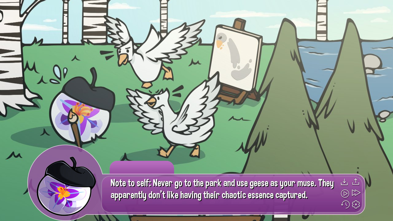In the small island country of Liliana, lays Clarke, an artist who just so happens to be a marble. They're having some trouble, you see. They're facing the worst thing that can happen to a creative: artist's block. Following the footsteps of their favorite artists, they're out on the town to find a muse! That's where you come in! It's your job to guide Clarke to their next muse and maybe even help them find love along the way. Will you make Clarke's next piece the best artwork Liliana has ever seen, or will they continue to be plagued with artist's block?