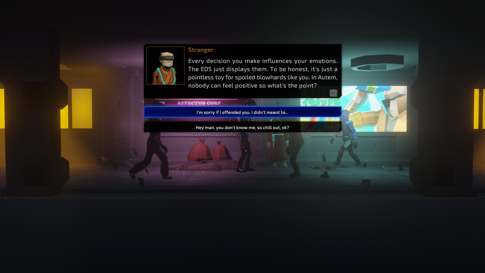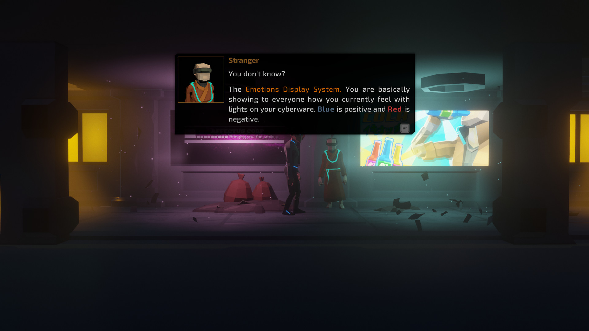 cyberpunk stealth-action RPG set in a decadent and sick megalopolis after a pandemic has deprived humans of the ability to feel positive emotions. In this world, the only way to feel good is a drug called