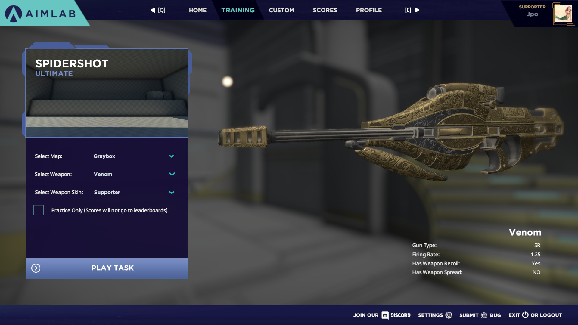 Train like the champion that you will become. The Aimlabs Elite Supporter Pack includes "Aimlabs Patron" title and 7 weapons wrapped in champion’s gold.