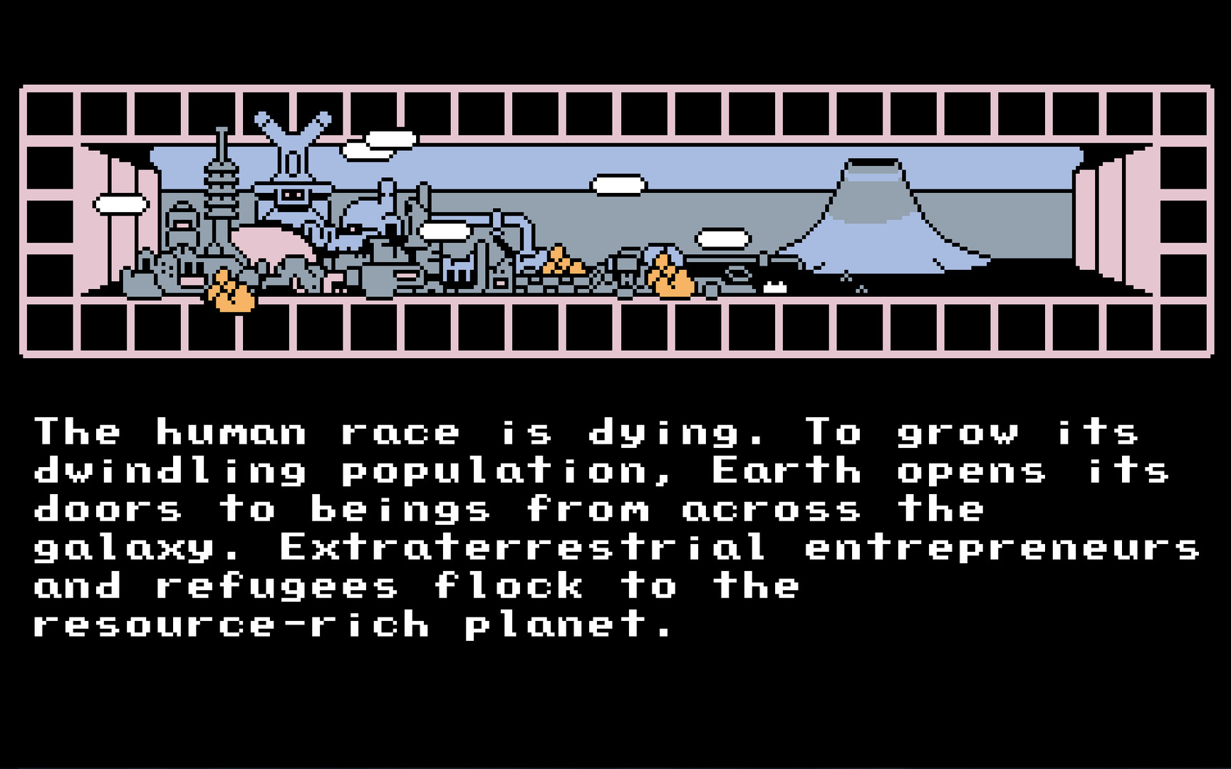 You are a homeless extraterrestrial living in a futuristic version of Japan. Humans are nearly extinct and Earth is a cesspool of pollution, urban decay, and economic inequality. Struggle to survive in this new style of RPG.
