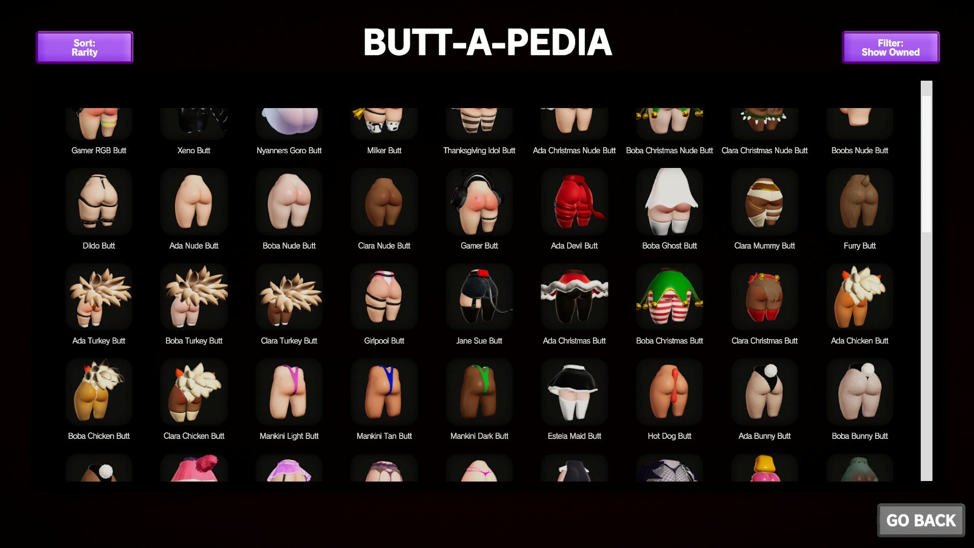 - Expand your collection. With inventory drops, you'll soon have so many butts you won't even know what to do with them.