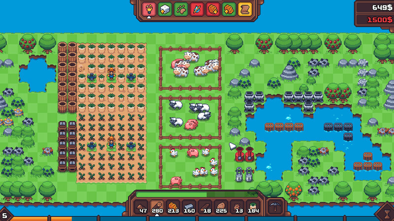 GameplayAnother Farm Roguelike Rebirth is a randomly generated strategic farming game with great emphasis on gameplay diversity. Your main goal is to earn money for the increasing rent. The initial small amount of land and capabilities quickly transform into a large farm. A countless number of ways to make money ensures that everyone will find something for themselves. Discover your favorite one and get to work!