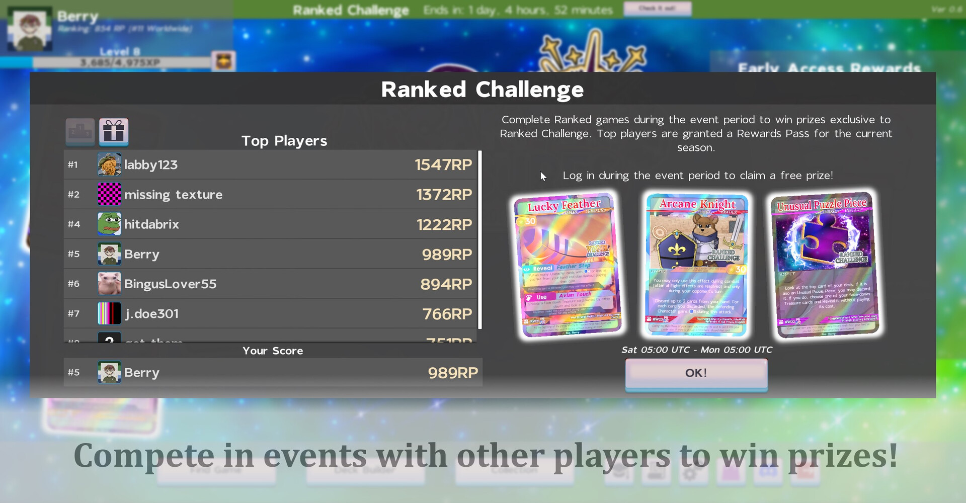 Build a whimsical deck of cartoon animals to battle foes & uncover special treasures in this cute but competitive online Trading Card Game! Collect trading cards featuring indie artists' works, open booster packs, and complete challenges to expand your collection!