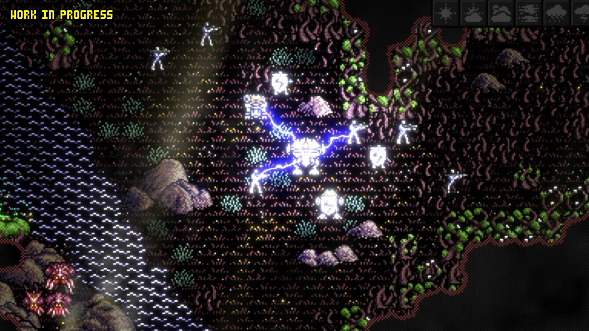 Retro-looking GFX with modern VFX like particles, shaders, and bone-based animations.