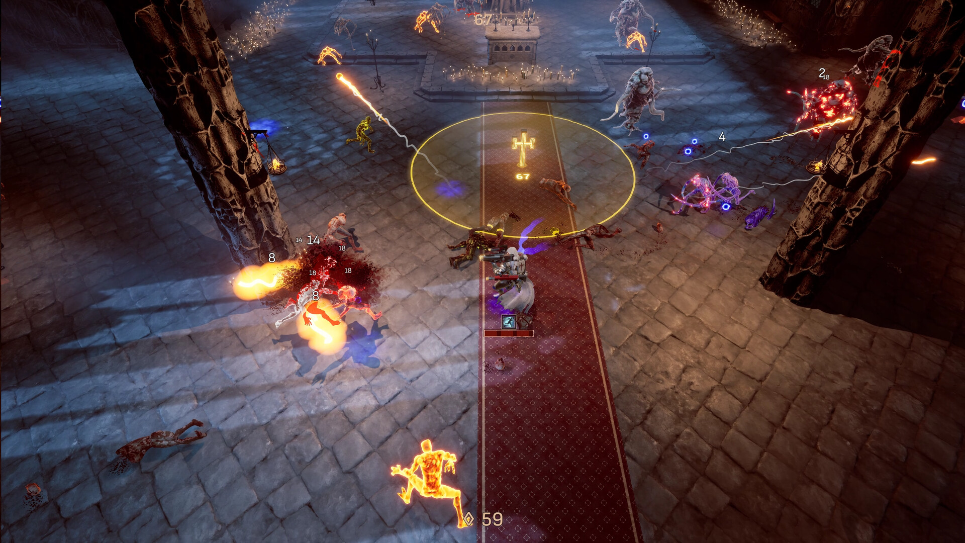 Begin your crusade by reclaiming the Order's headquarters - The Cathedral - from the clutches of demonic forces. Once liberated, this sacred bastion becomes your strategic hub for meta-progression. Hone your skills in the Training Ground to enhance your meta-stats, forge mighty weapons in the Armory, boost your in-game abilities in the Alchemy Chamber, and summon new valiant heroes from the Bell Tower.