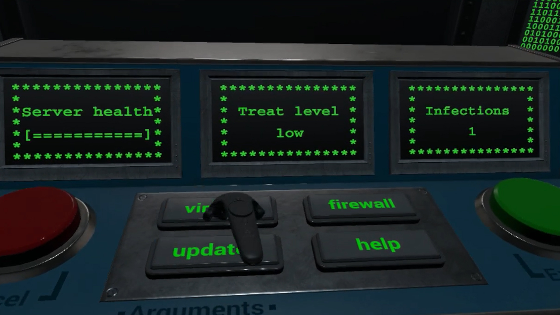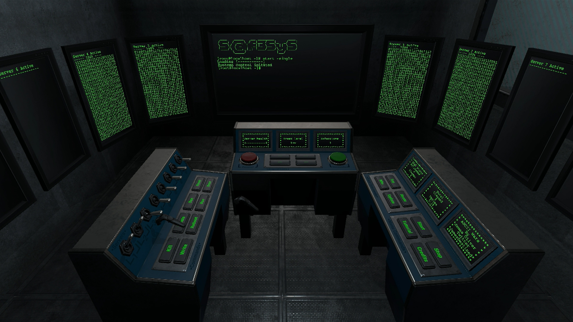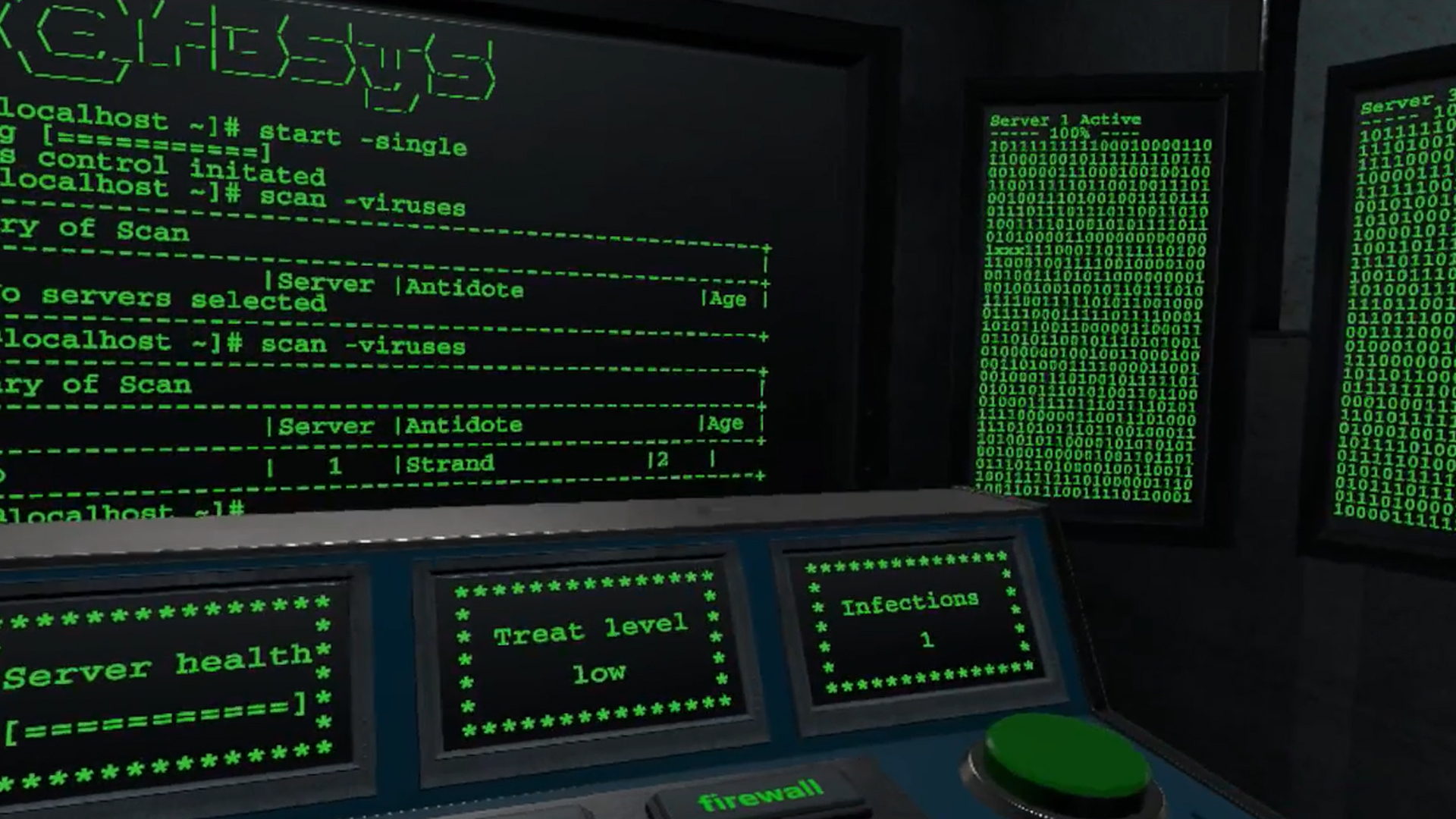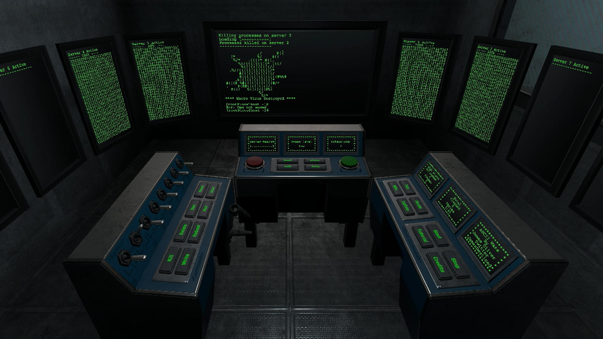 Protect the servers. Locate the vulnerabilities. Exterminate the viruses. This fast paced strategy game lets you enter terminal commands from a VR interface to defeat the viruses before you become overrun.