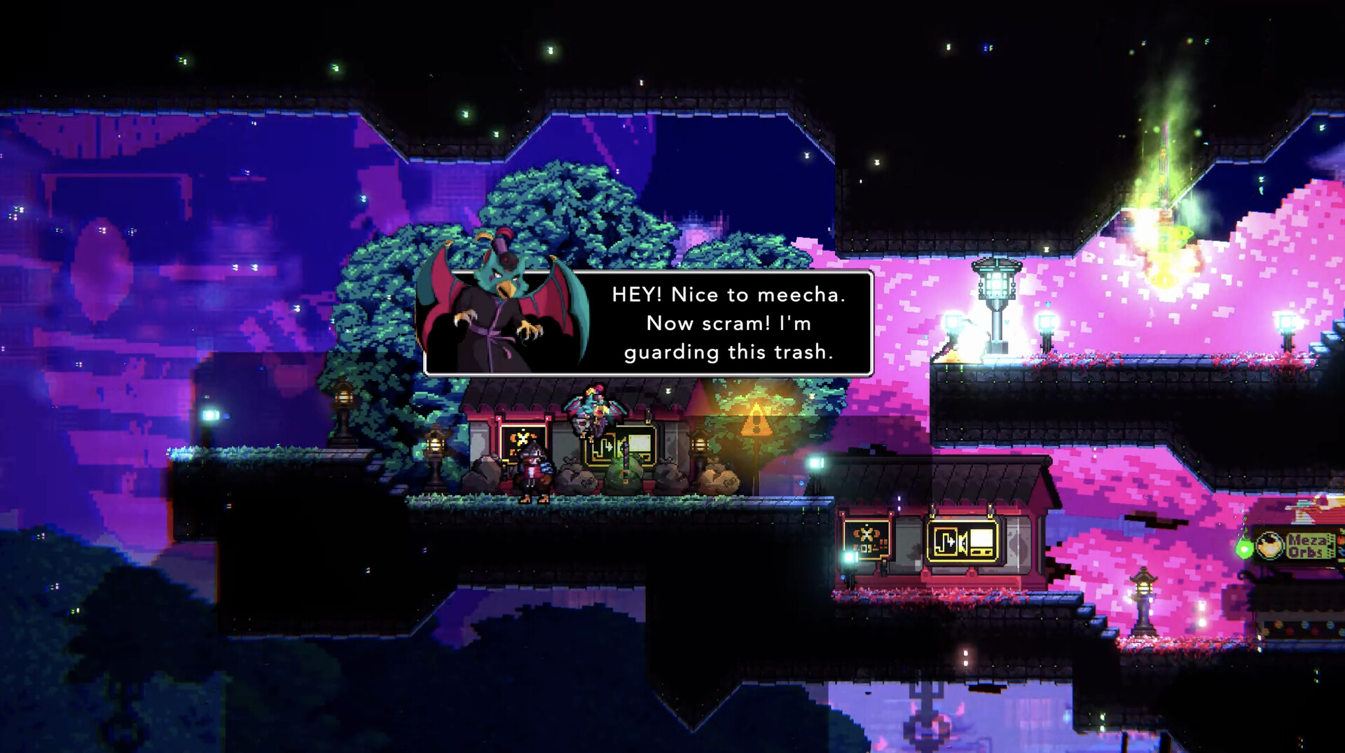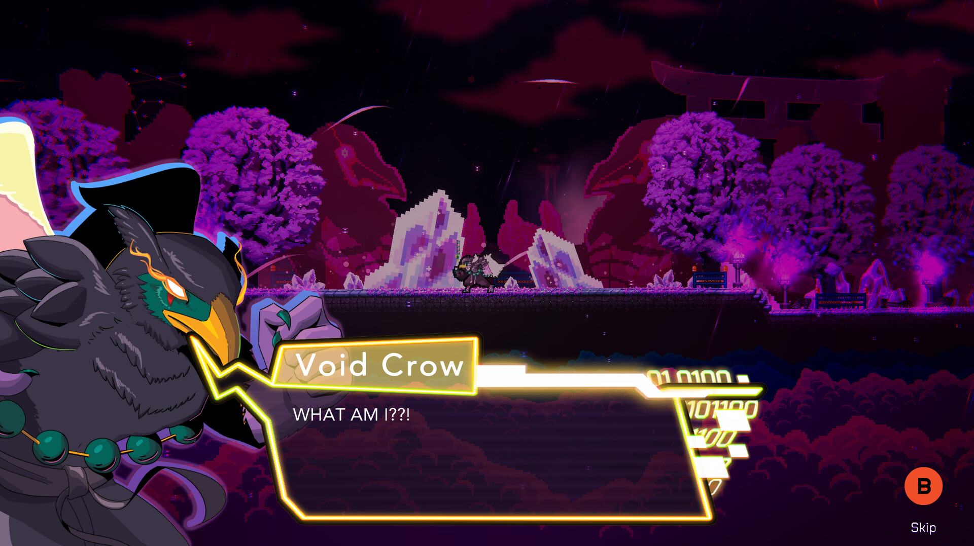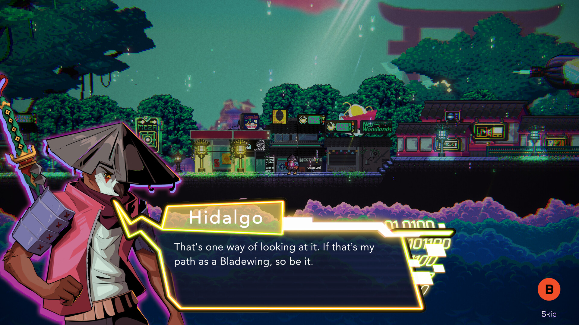 You are Hidalgo Bladewing, a bird with a beef. Hack, slash, platform, and soar through a beautifully chaotic pixel-art neonscape in your quest to save your feathered friends. Challenging retro-inspired platforming gameplay, transforming weapons, and fowl Ninja action await.
