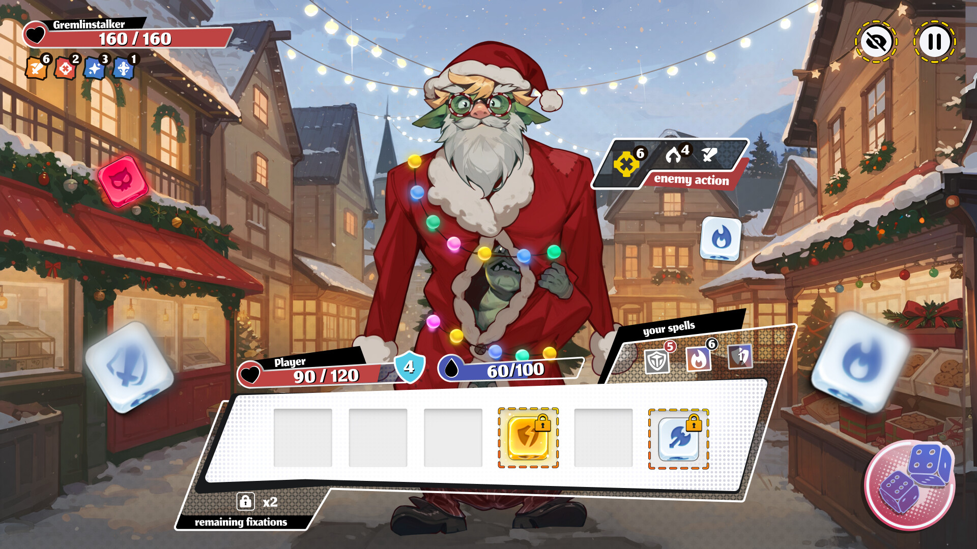After a long absence, you return to the City, right at the time of the famous Christmas Fair. But instead of smiles and cheer, there are gloomy faces and exorbitant prices for presents. Something is clearly wrong, and it's up to you to figure it out.And that might be harder than finding the Smiling Wizard's treasure! Arm yourself with magic dice, get to the truth and save Christmas!