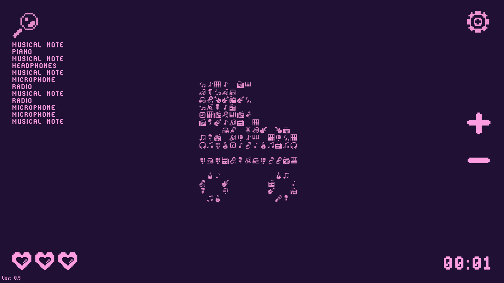 This is a small and relaxing game in which you have to find objects made with pixels, within levels made with those same objects! Each level is unique, adorable and procedural, allowing you to play your favorite levels infinitely.