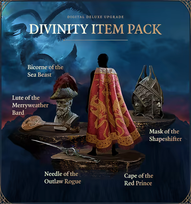 AND AN ITEM PACK FROM THE WORLD OF DIVINITY: ORIGINAL SIN!- Mask of the Shapeshifter - Headgear that allows you to change race and appearance on the fly, inspired by Fane of Divinity: Original Sin 2