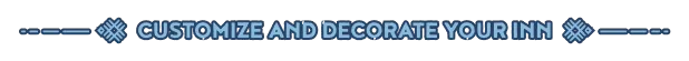 Personalize your inn with a variety of decor elements, including furniture, paintings, and carpets, to create a welcoming and unique atmosphere.