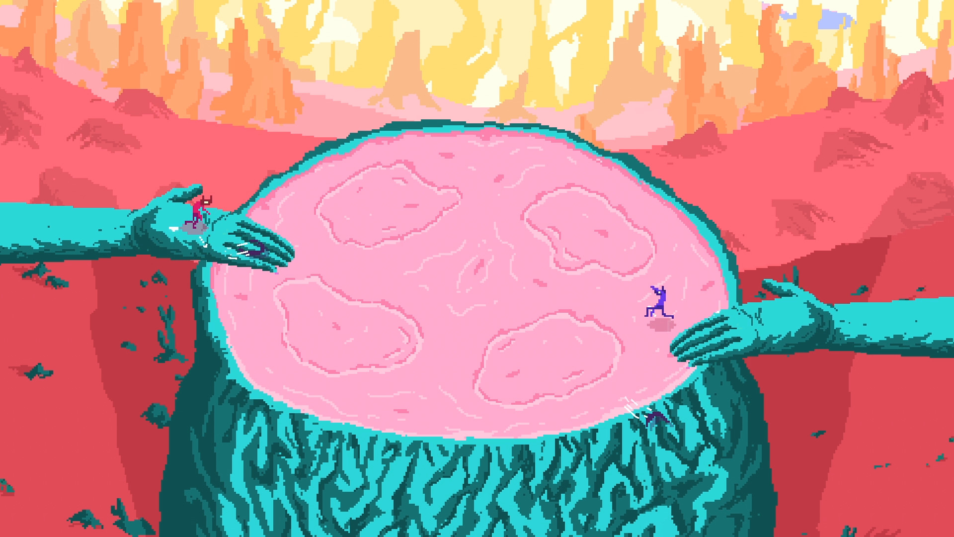 Adapt to the changing surface of the platform. Take cover behind obstacles and throw your opponents into holes in the map.