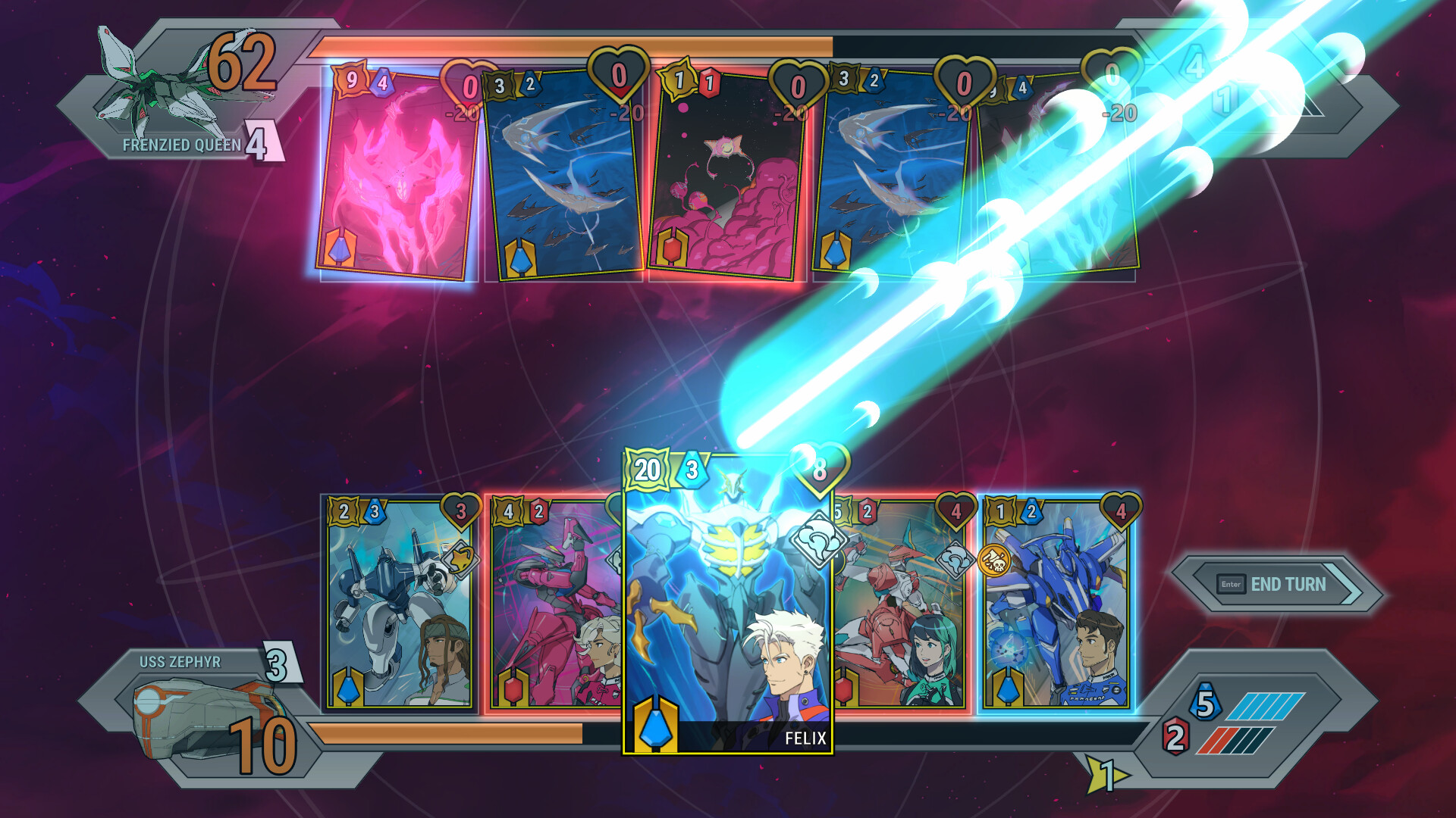To grow your crew and deck of mecha cards, you'll forge bonds with space pirates, paranormal investigators, starball athletes, and more. Each Faction offers a unique battle style along with their set of eccentric pilots.