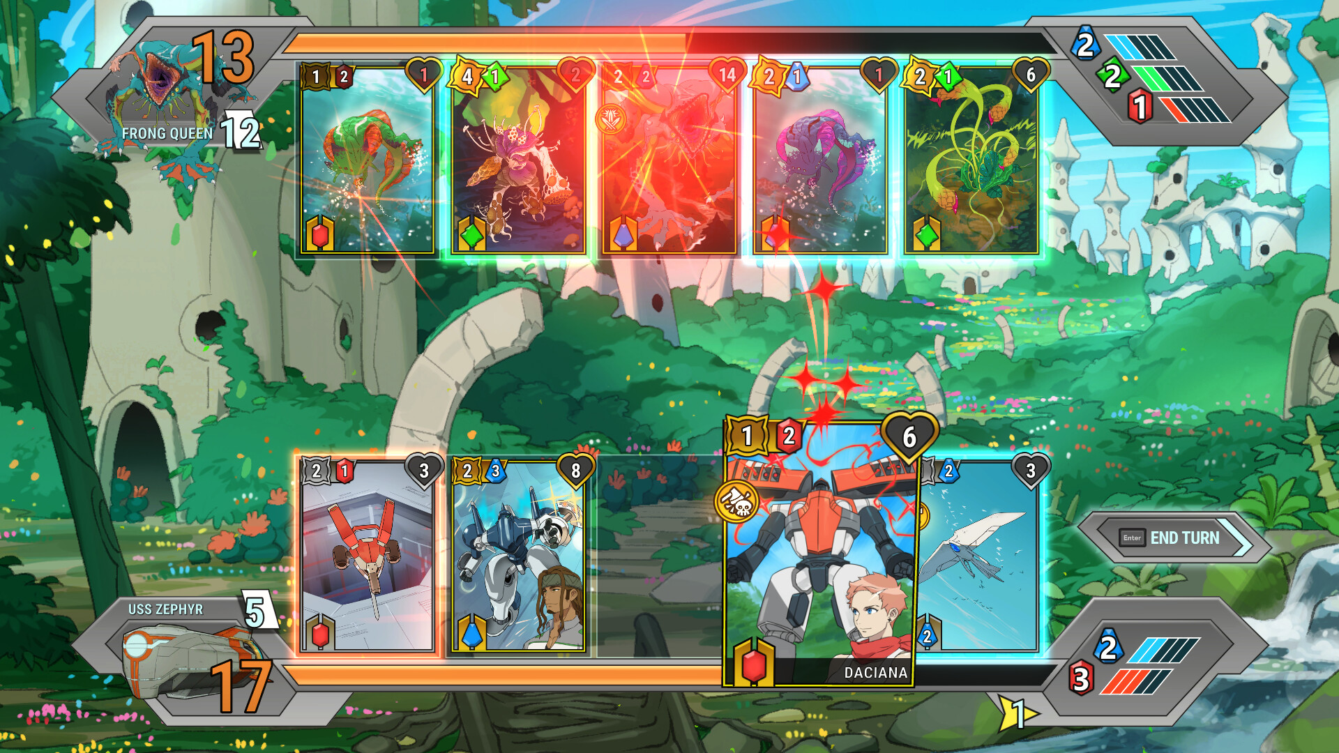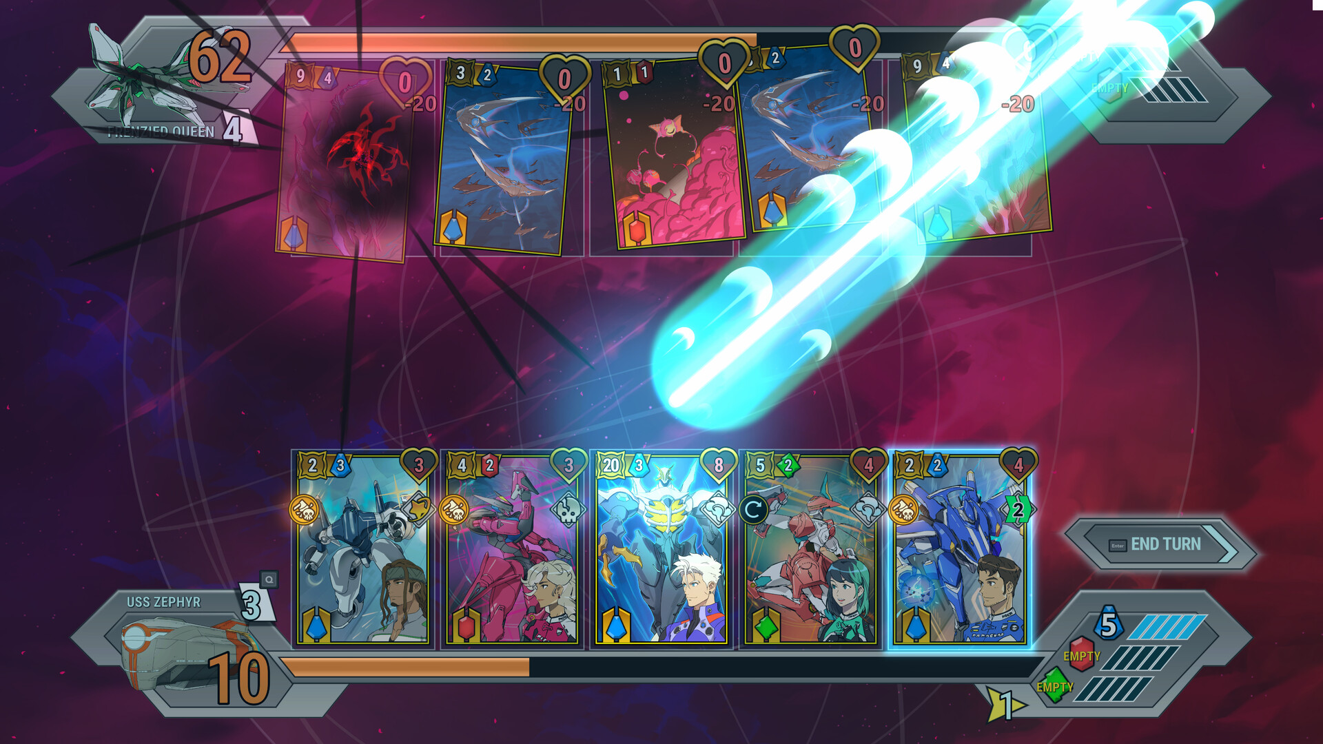 Between missions, spend time on your bustling ship. Get to know your endearing crew over a meal, practice card synergies in the Sim Chamber, craft handy Drones, install powerful mods in your favorite cards, upgrade your ship to support your pilots in battle, handle Faction bounties, and plot a course to your next mission.