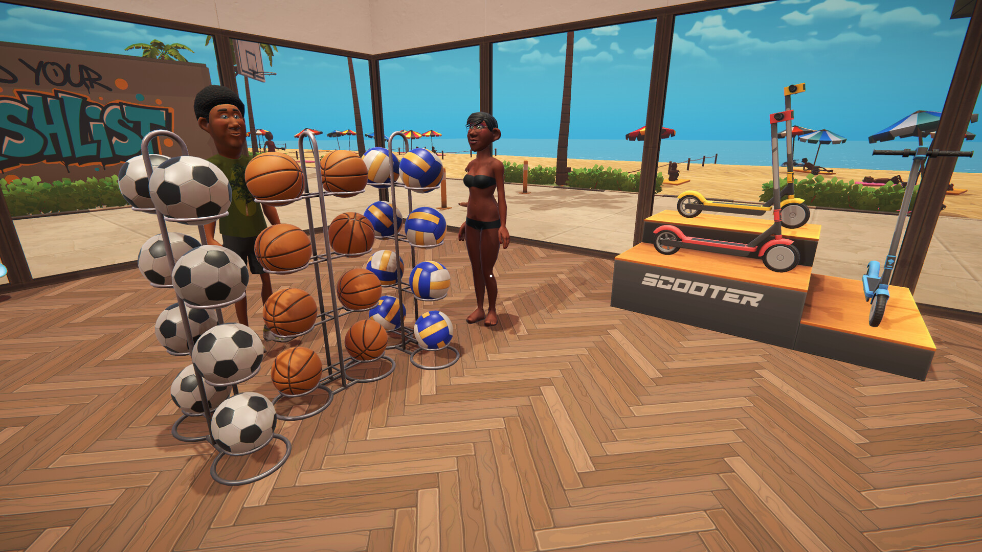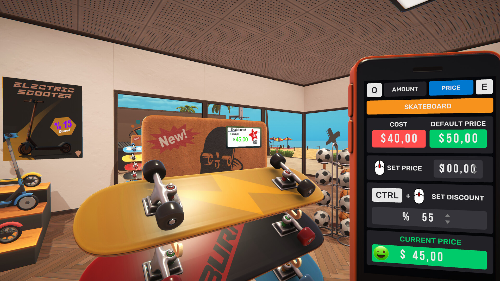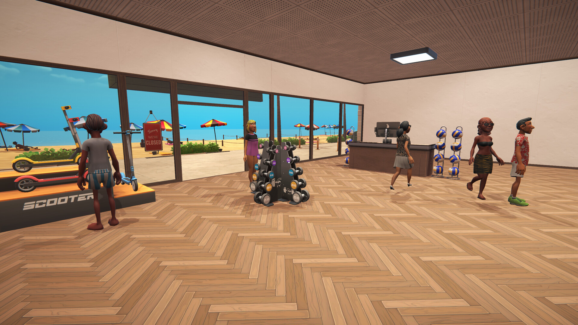 Beach Outlet Simulator is a first-person simulation game where you run a retail company.Expand your humble store into a huge retail company