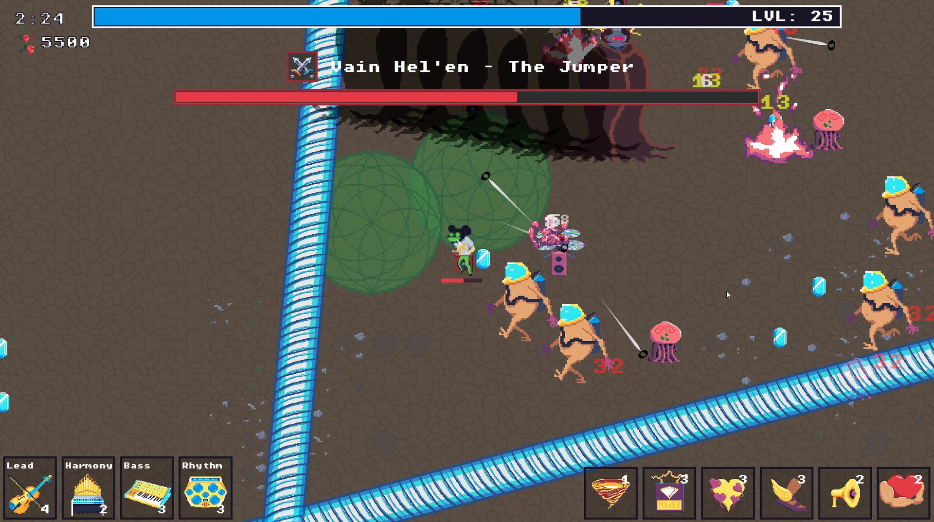 Build your band, unlock powerful relics, and slay hordes in sync with the beat. Big Band Survivors is a rhythm-based roguelite that combines the visceral gameplay of the Survivors-like genre with musically interwoven game mechanics.