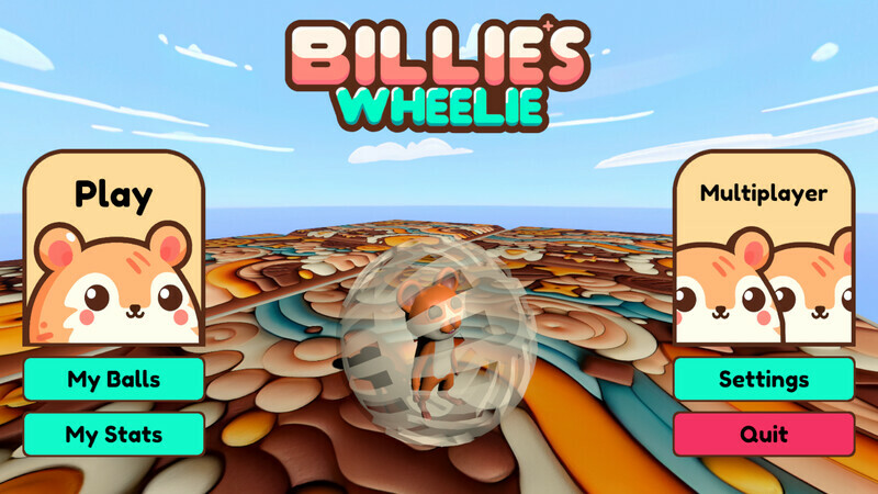 Billie's Wheelie is an adventure racing platformer game, You can play it with up to 8 players Co-op/PvP, Playing as a hamster in his ball trying to beat all challenges, Collecting all cheese pieces for rewards, And beating your friend's time records.