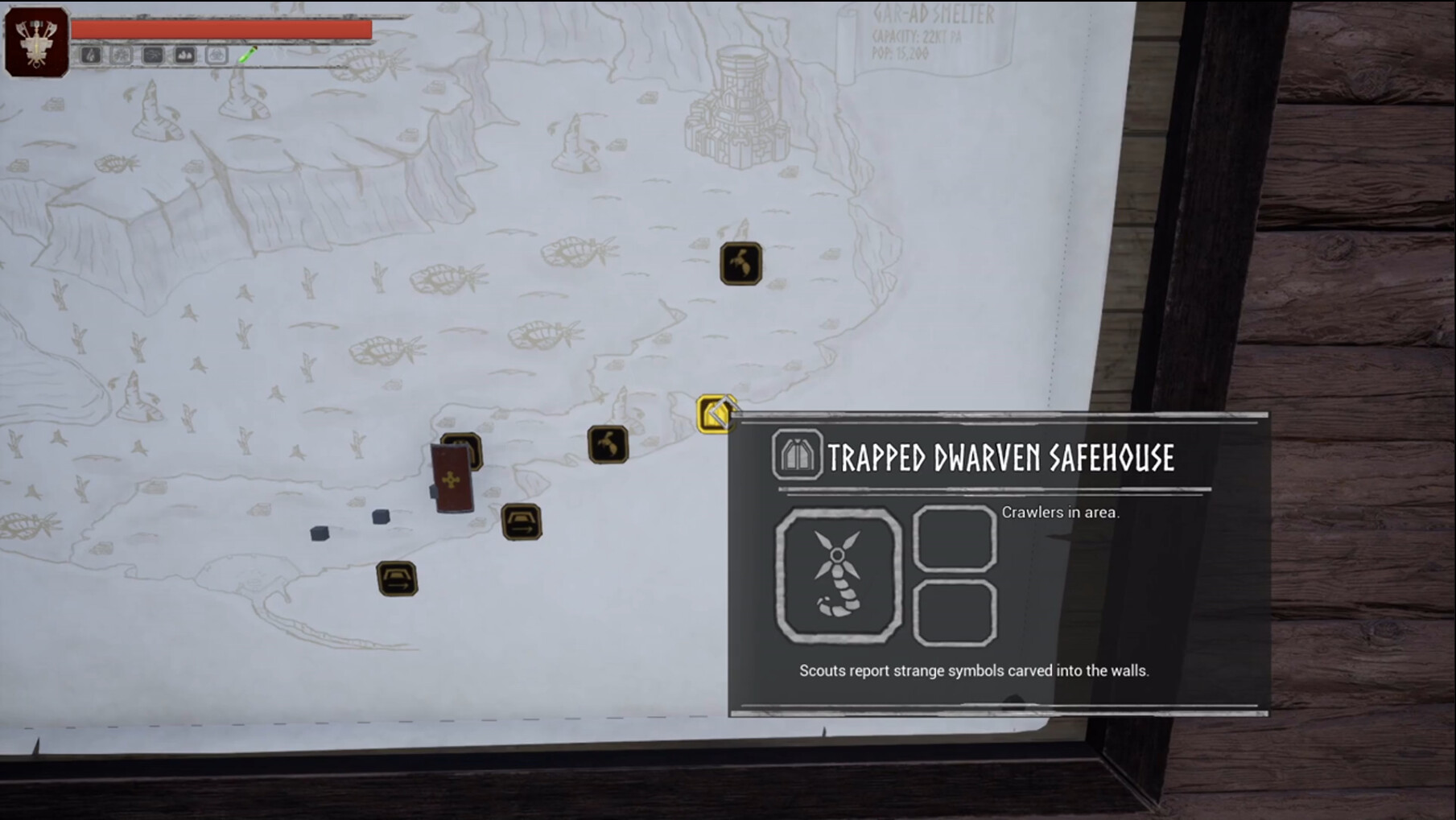 Interact with the cohort, your fellow shop-keepers, and adventurers as you conduct your business in the civilian area of the camp. Trade with the cutler and quartermaster, gather rumors or seek healing at the tavern, and track your progress at the Banner Office.