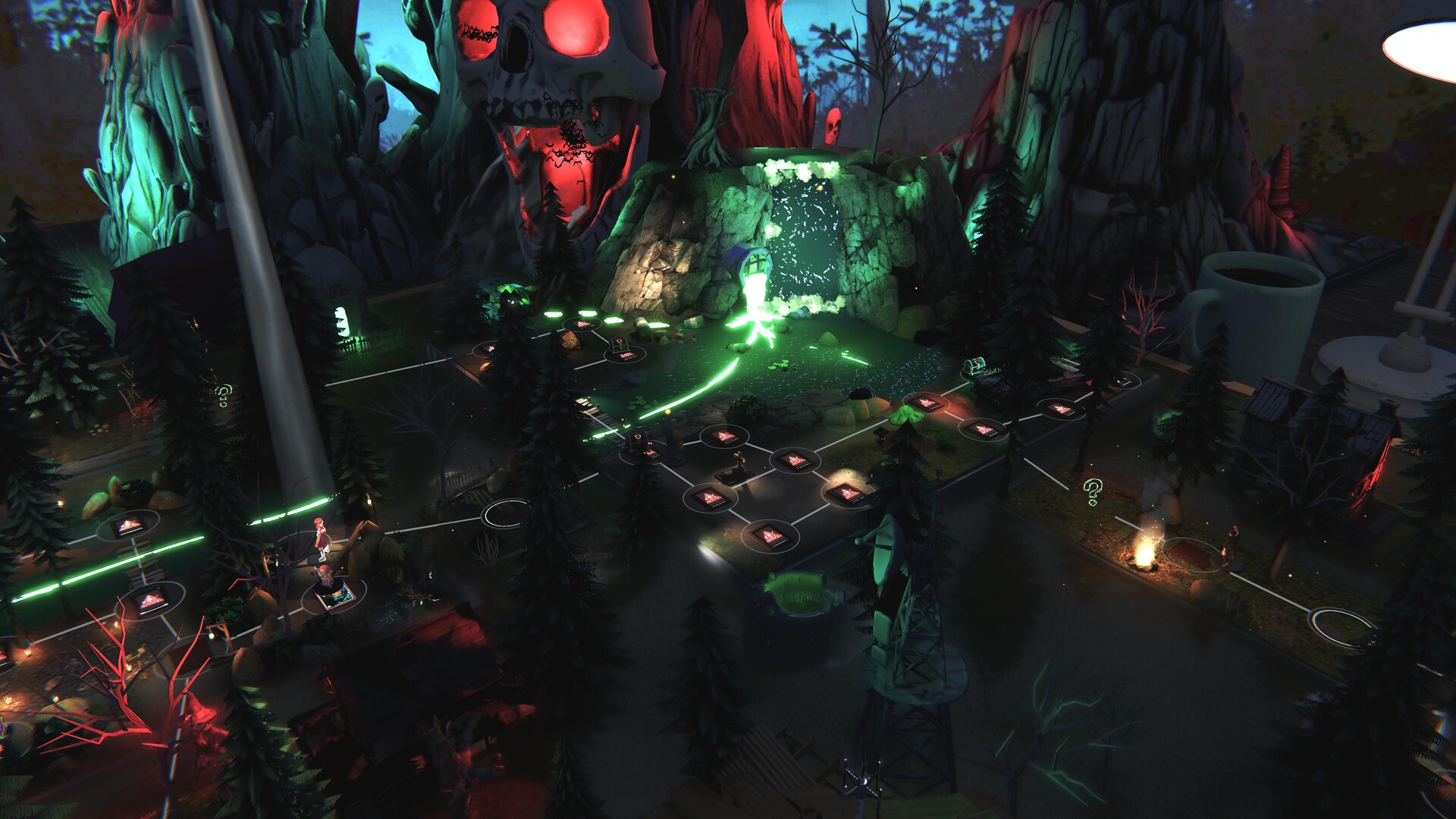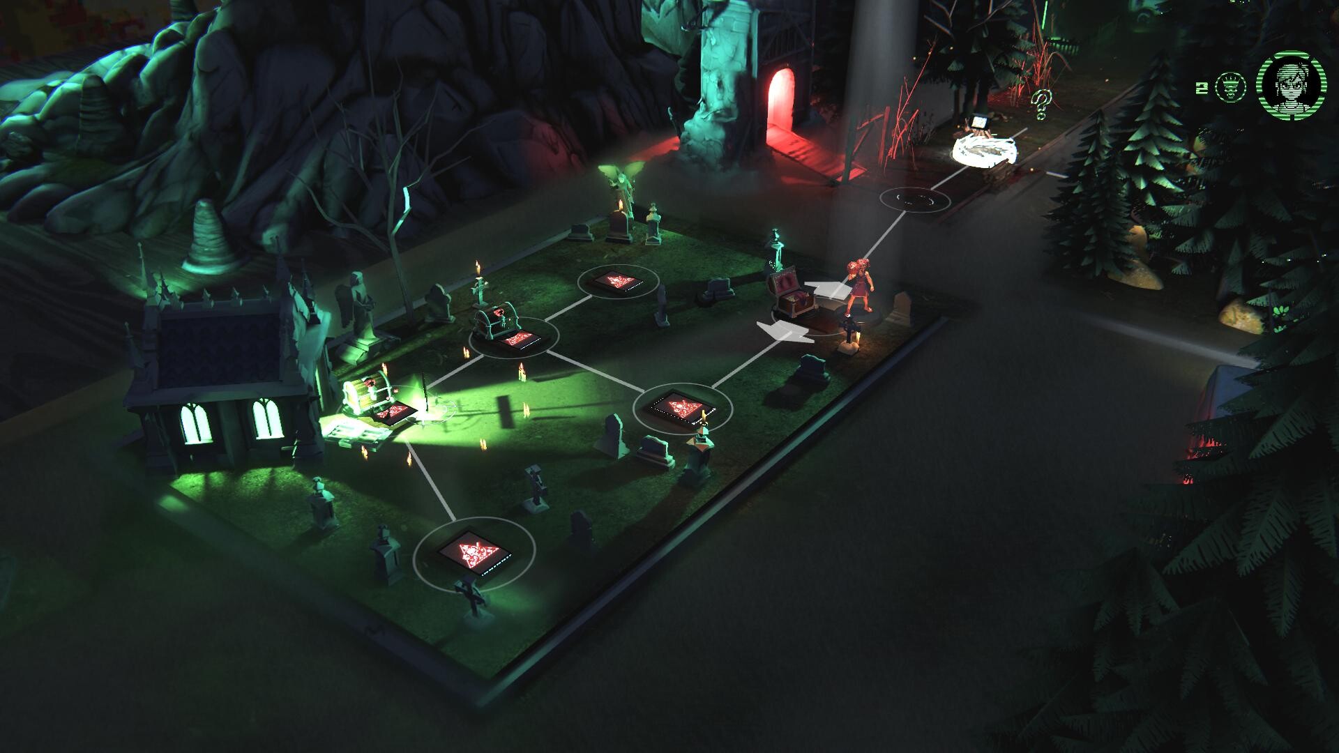 Step into a twisted 80s-inspired world full of dark secrets, haunted graveyards, and supernatural threats. Travel trough the board and explore the different areas.