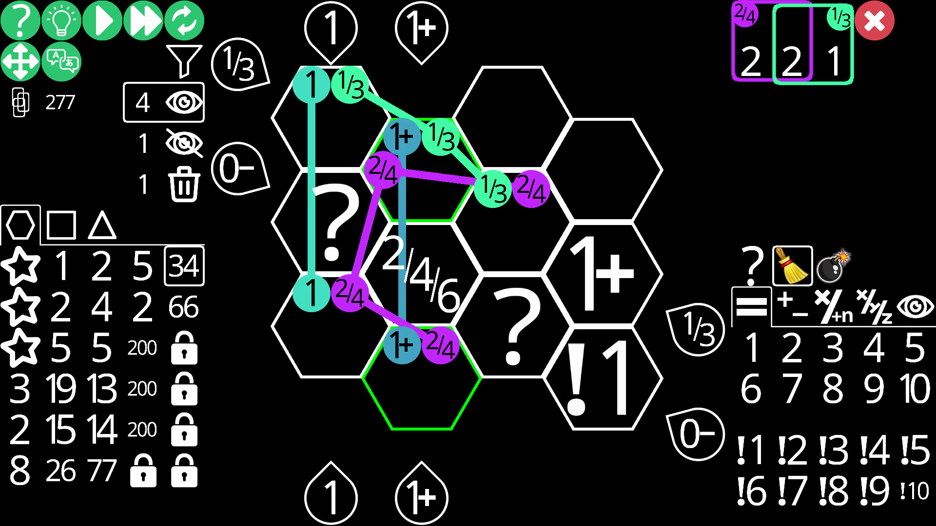 - A hint system can mark the determinable squares and remove all unnecessary regions from the board.