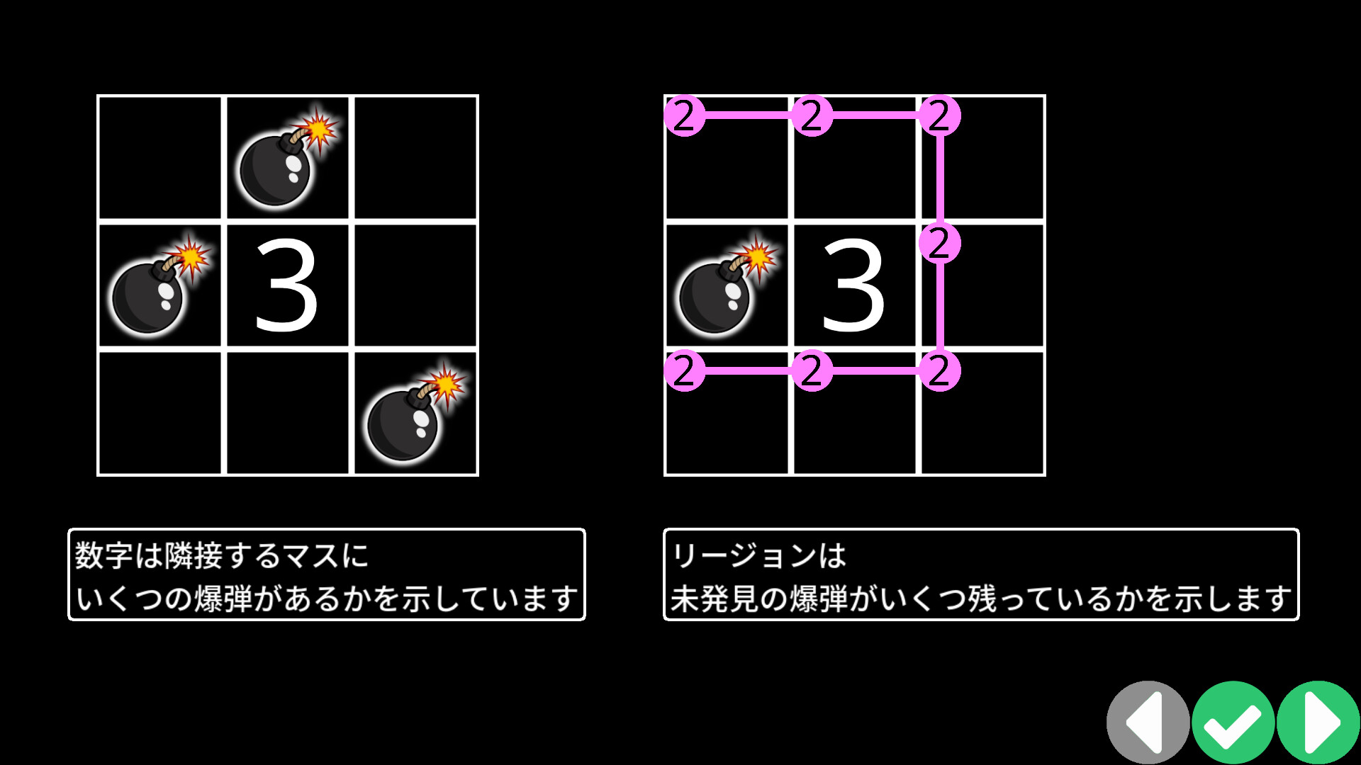 - Rules act on regions to mark bombs, clear squares or create new regions