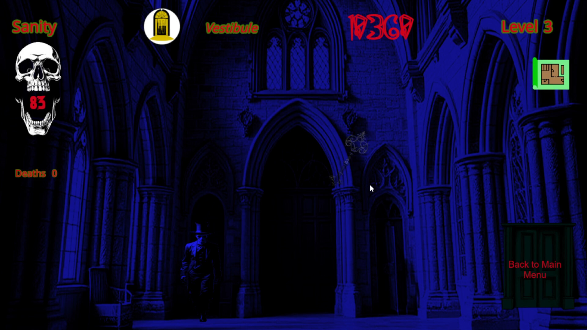 This game is a point-and-click horror/thriller game where you click on the floating key to collect points. While advancing through the game, you must be alert for the emergence of the residents of the manor who appear randomly and suddenly. Your goal is to be visited by each resident in one sitting of the game, as well as obtain a high score.