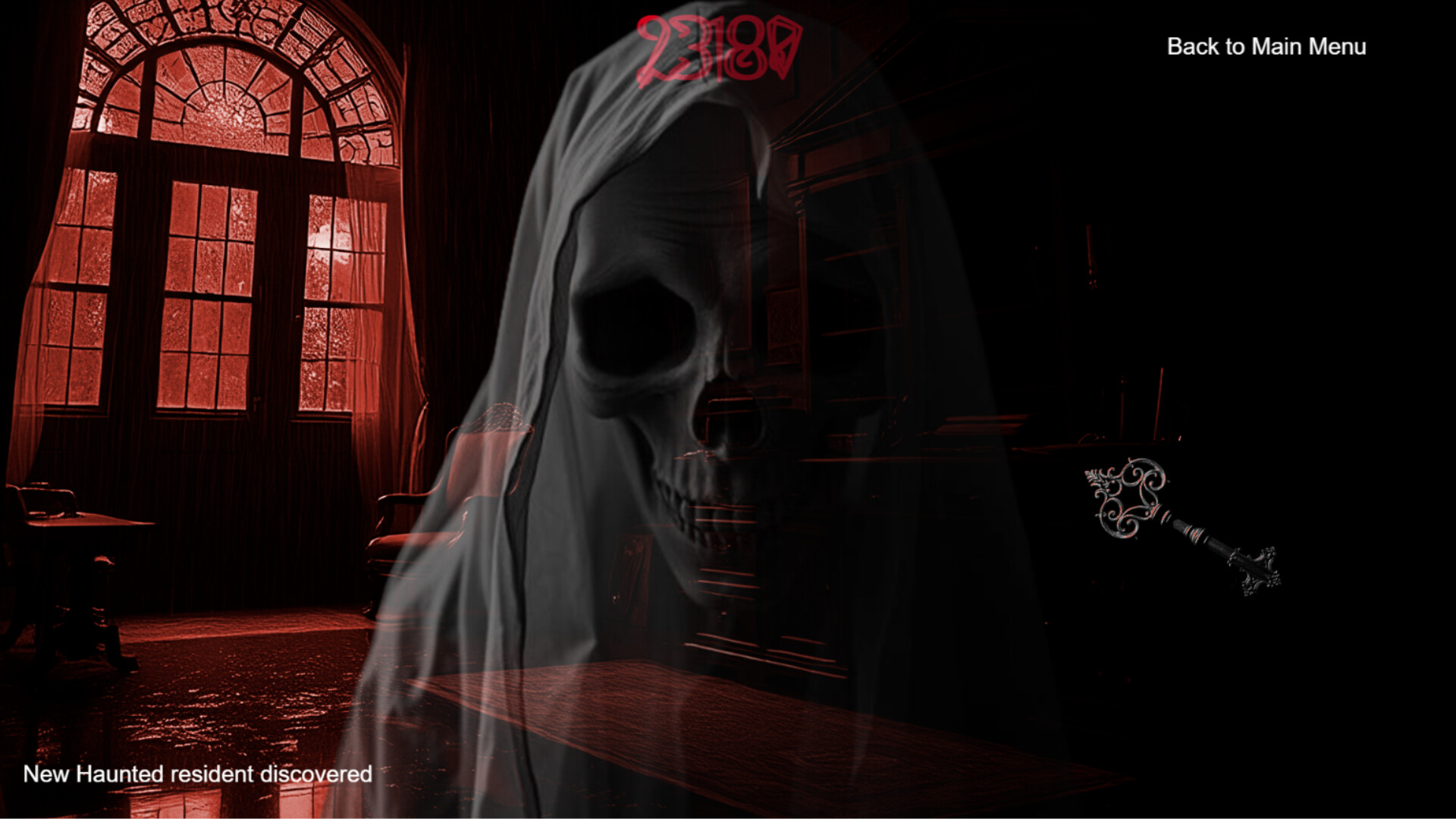 Click on haunted key to collect points and survive the sudden visits by the Residents as you advance through the manor.