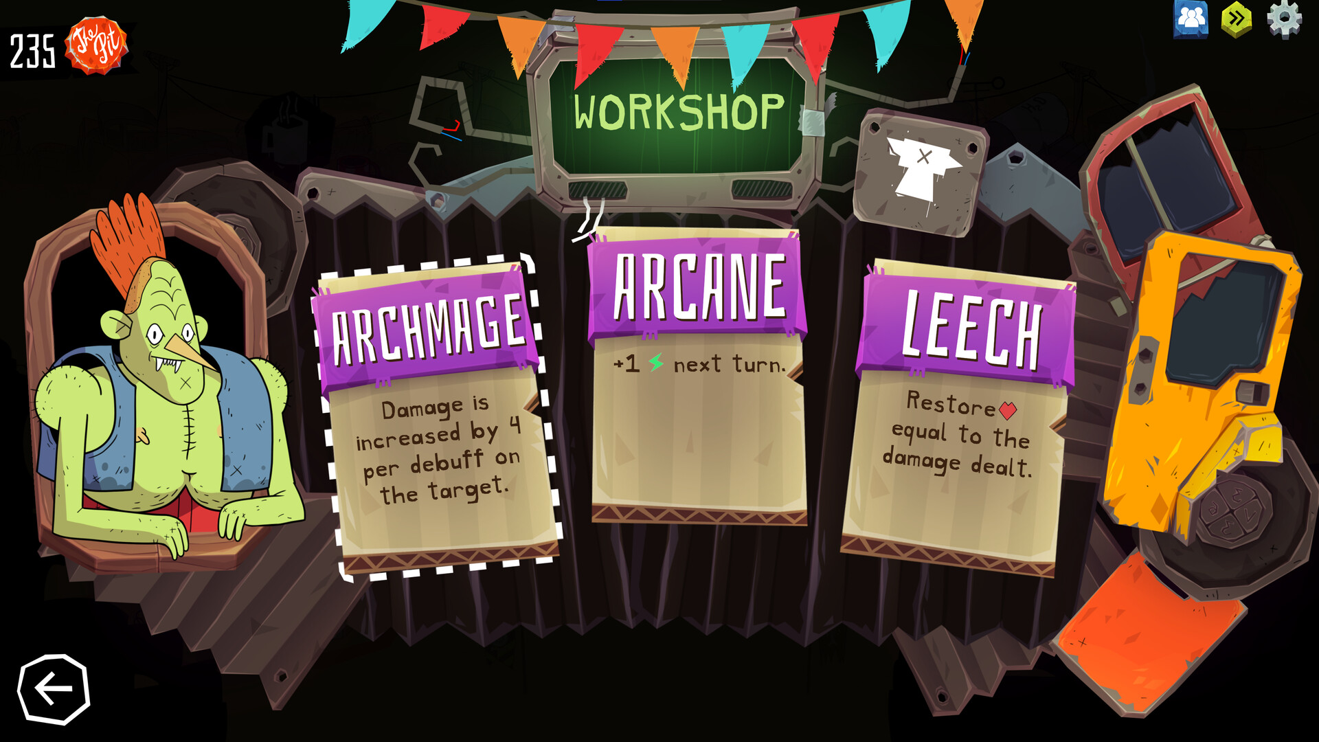 Between bouts in the arena, you'll take a break in Bramble Town, where you'll have an opportunity to upgrade your cards, train your heroes, or just enjoy the sights. There's not enough time between brawls to do it all, so you'll have to make critical decisions about which vendors you want to visit.