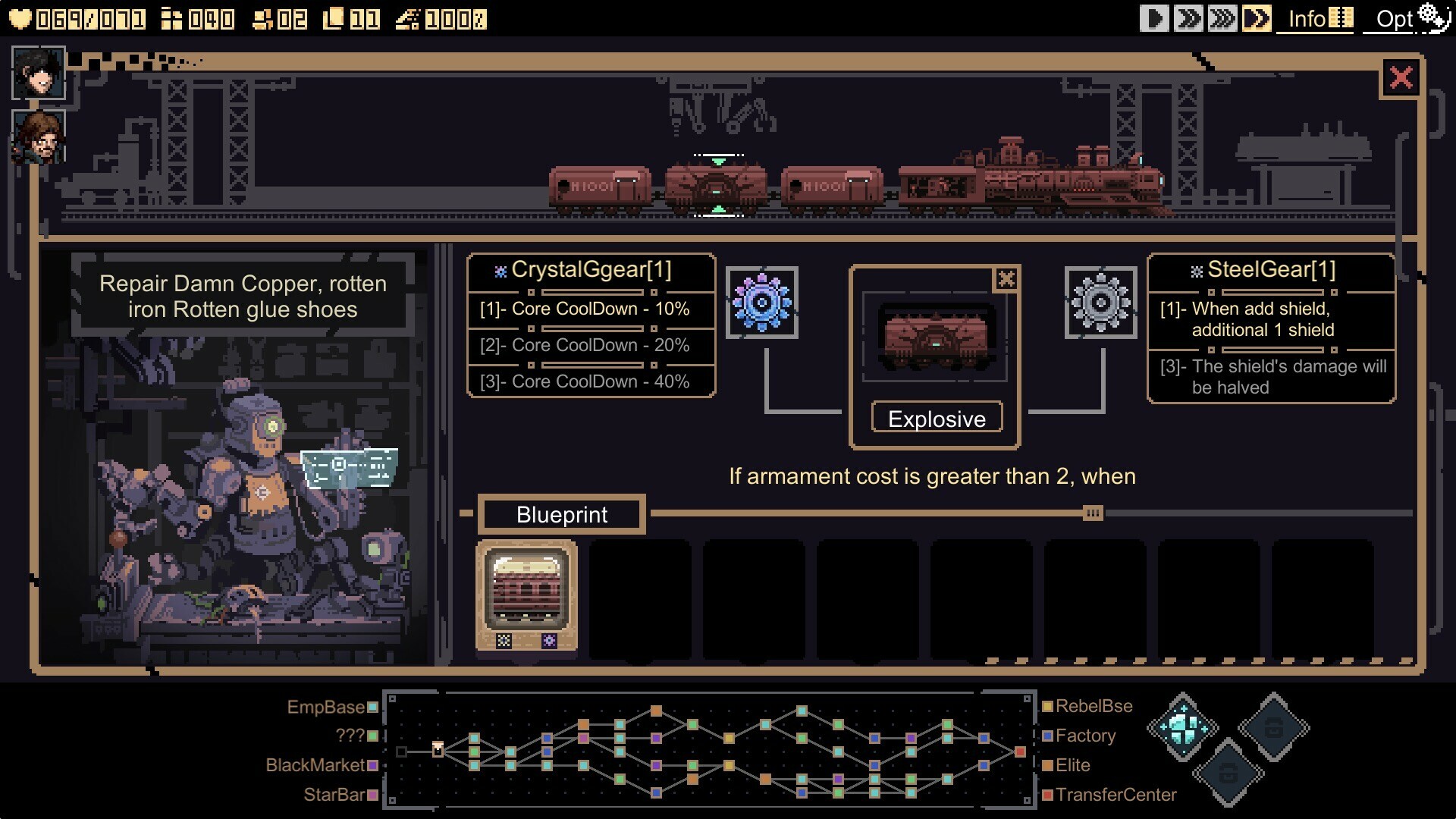 ・Each playthrough is a new procedurally-generated adventure, traveling from planet to planet in a variety of styles, encountering all sorts of unexpected events, acquiring equipment to strengthen your train, and recruiting all sorts of mercenaries to join your team.