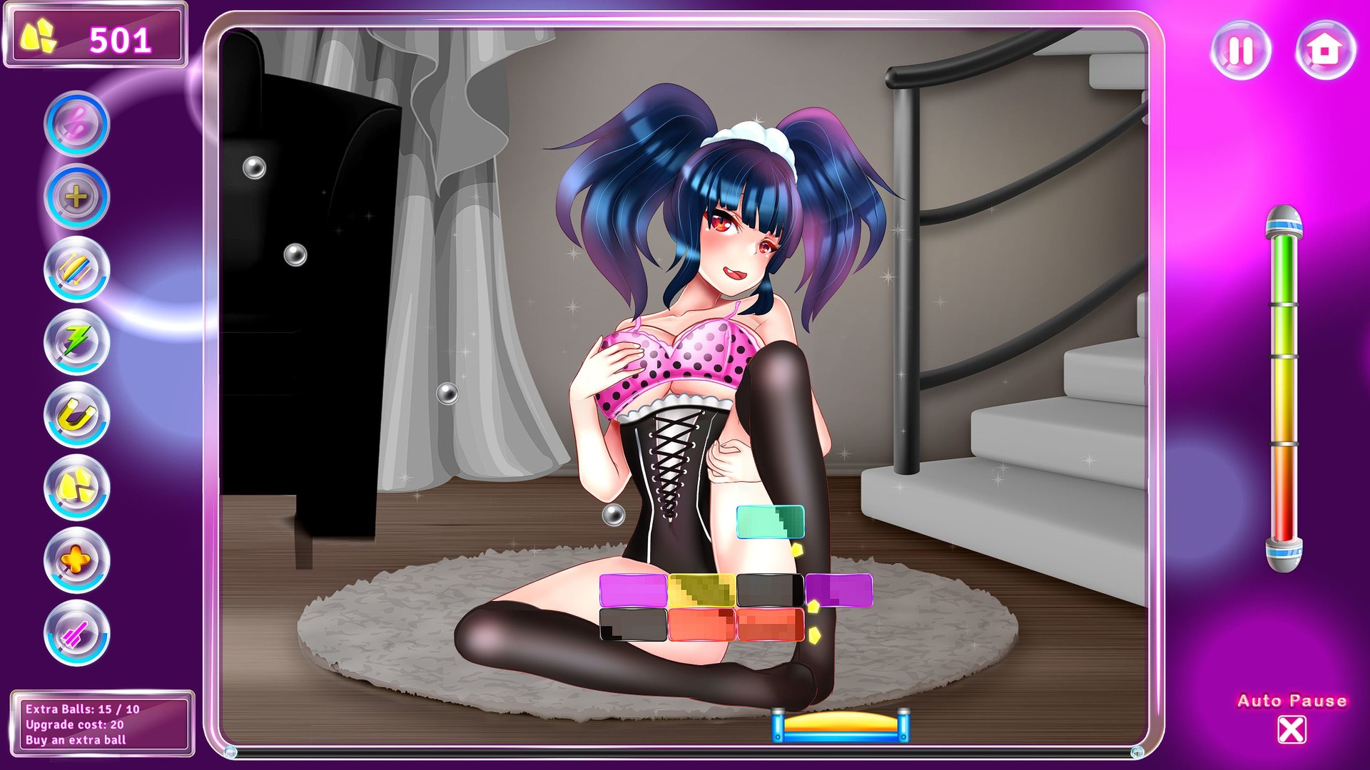 Busty Balls Brick Breaker or short BBBB is a classic arcade brick breaker game with a twist. Destroy bricks which hide the girls and collect shards to buy powerful upgrades. Enjoy this rather layed back arcade game which features 16 different levels, each with a unique scenery.
