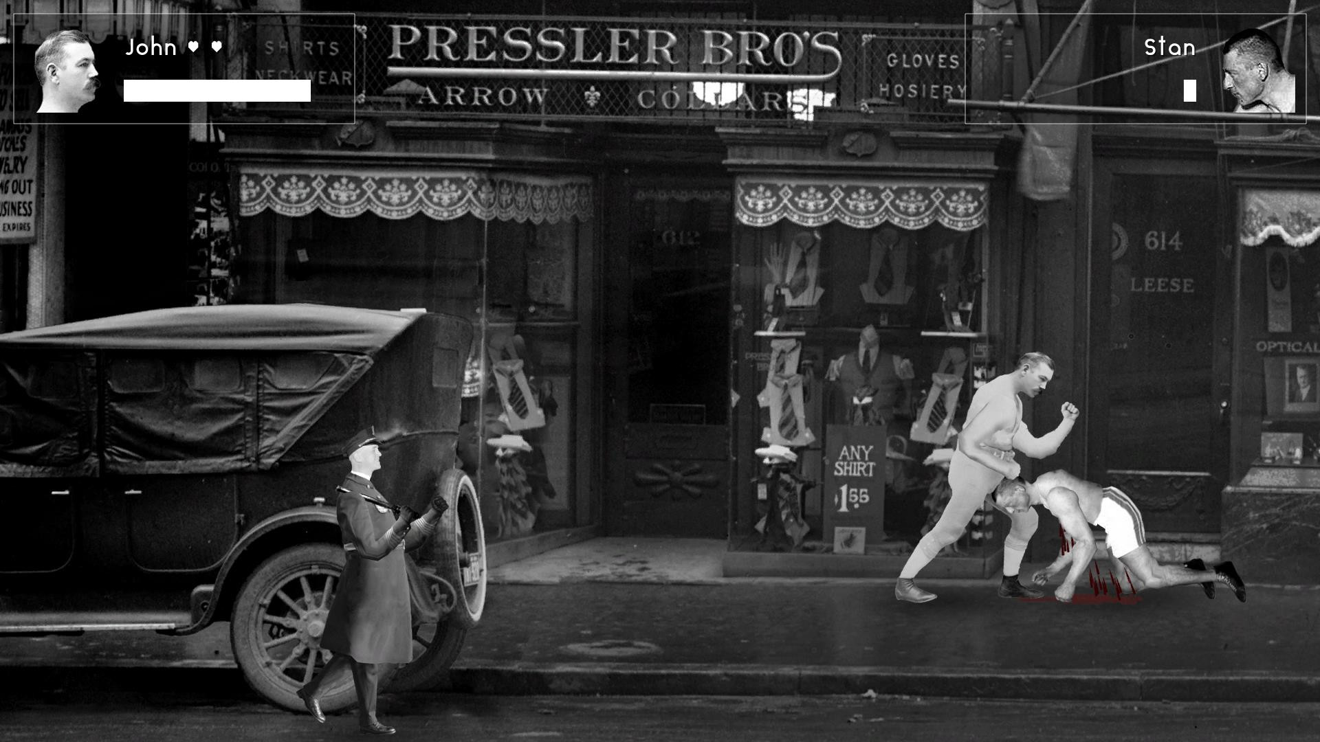 You play as a retired boxer who is looking for his stolen dog. The game follows a classic arcade brawler so prepare to face lots of enemies. Characters and backgrounds are based on old pictures from 1910s, 20s and 30s so this is a true retro game. Play to find: