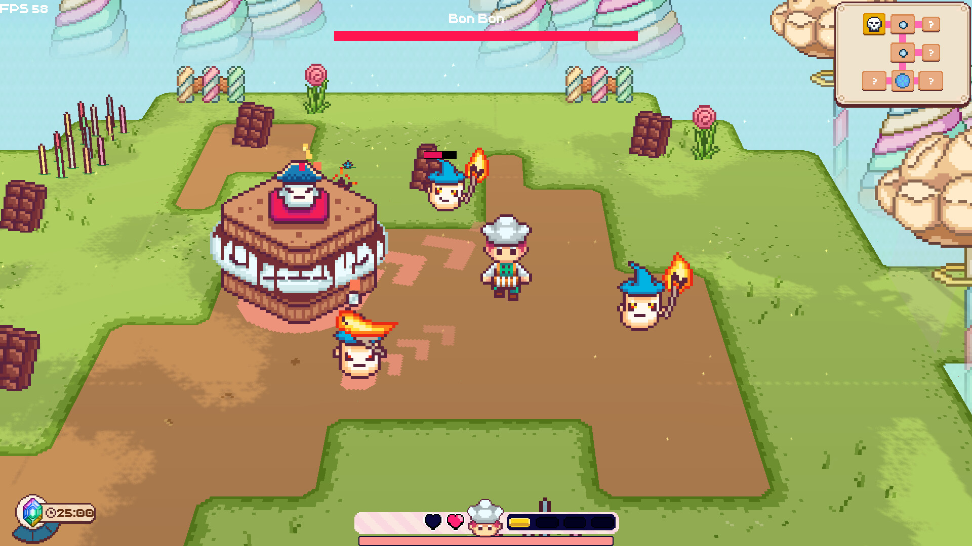 Candy Crawler is a roguelite dungeon crawler where you also manage a cosy pastry shop. Journey through candy-themed realms, gather rare ingredients and craft mouth-watering desserts to sell in your cosy bakery, all while balancing the pressures of a greedy landlord constantly increasing your rent.