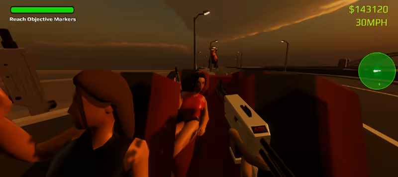 Escape and hunt down criminals, dinosaurs, or your friends in car deathmatch. Drive through a 7 level campaign on PC or VR, with nearly 4,000 combinations for your vehicle. Pick up chicks, blow up hideouts and discover the mystery of Bang City's Mayor.