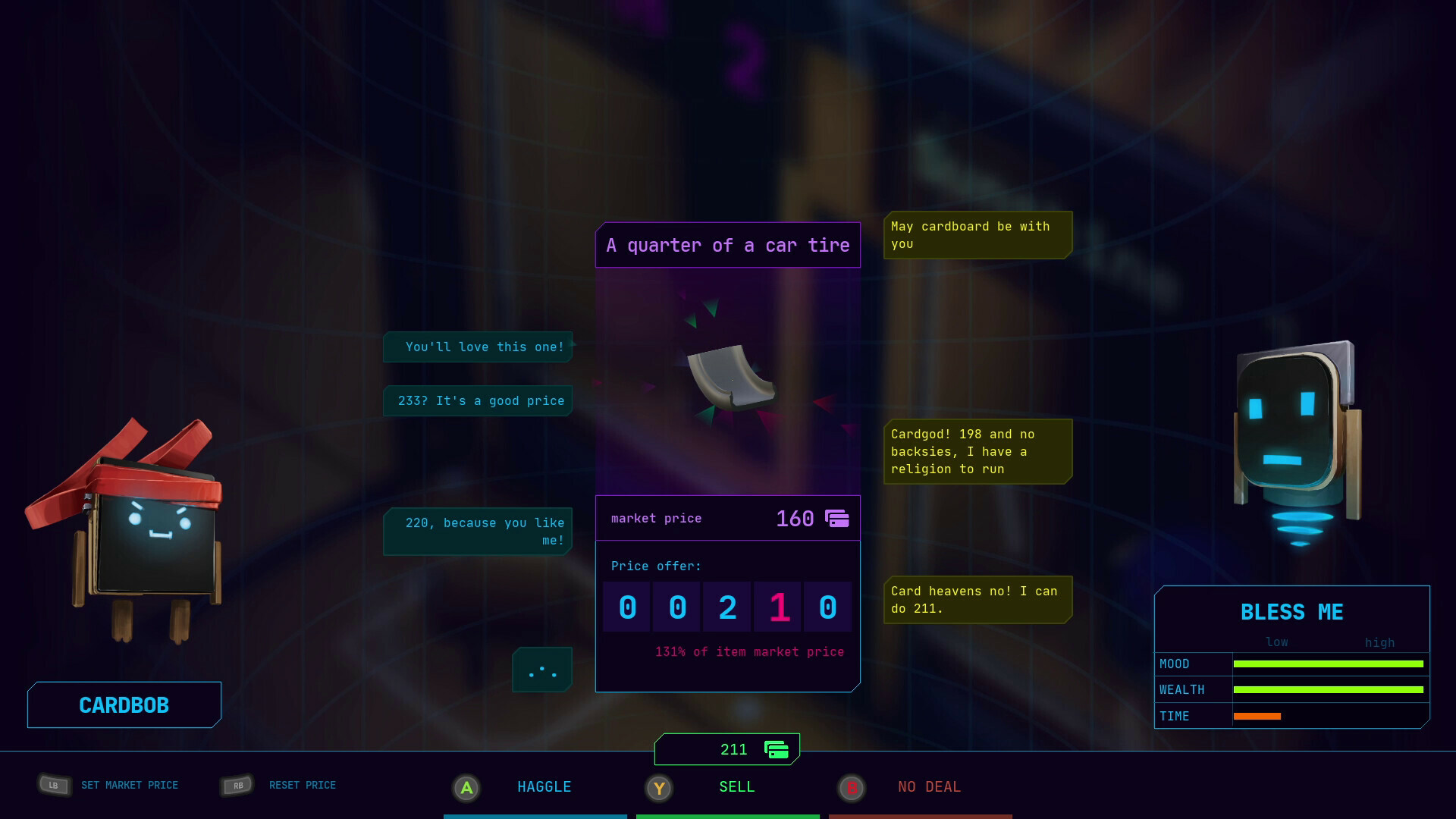 Cardbob: Revival puts the players in the role of an unambitious shopkeeper that gains access to a mysterious dungeon system to go collect items for their shop. The player, in the role of Cardbob, has to haggle for the best price when selling items to NPCs. Look after your shop in a sci-fi cardboard universe, venture out on dungeon runs collecting rare items to sell to customers, grow stronger and become the top antiques merchant in town.