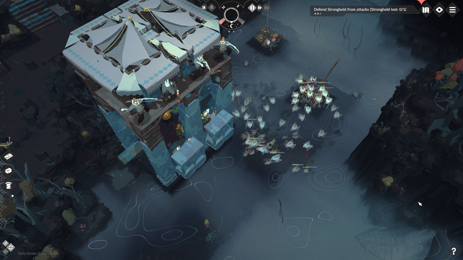 Build cheaply and quickly using wood, or establish quarries and use durable stone to better withstand the onslaught. Keep an eye on structural integrity and load-bearing columns as falling pieces will kill friend and foe alike, often creating unique opportunities to crush numerous enemies with cleverly placed vulnerabilities.