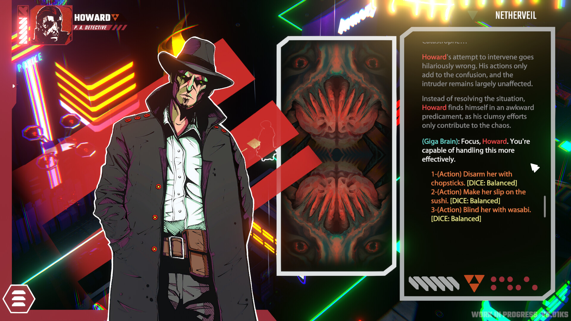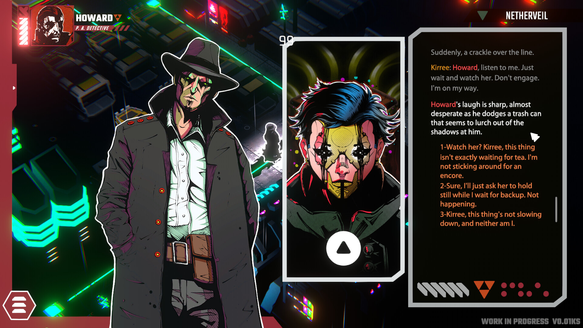 Netherveil City eats the weak. Its streets bleed neon, its corpses crawl back to life, and its secrets? They'll gnaw through your sanity. Step into the worn boots of Detective Howard. Armed with a rusted badge, a sentient rose that won't shut up, and a pocketful of stolen dice.