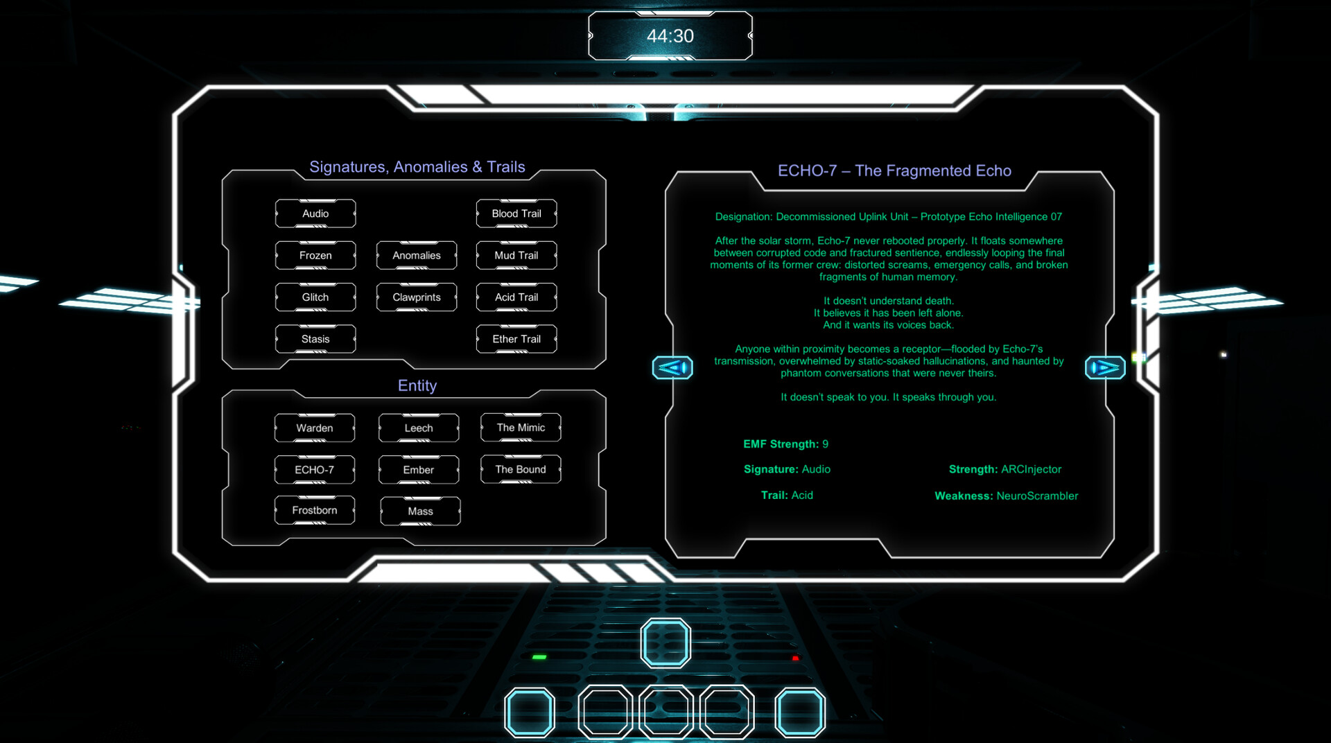 Your helmet-integrated dual vision scanners reveal hidden truths—but they won’t protect you. In this phase, stealth is your only defense. The Entity is aware. It is watching. And it is not alone.
