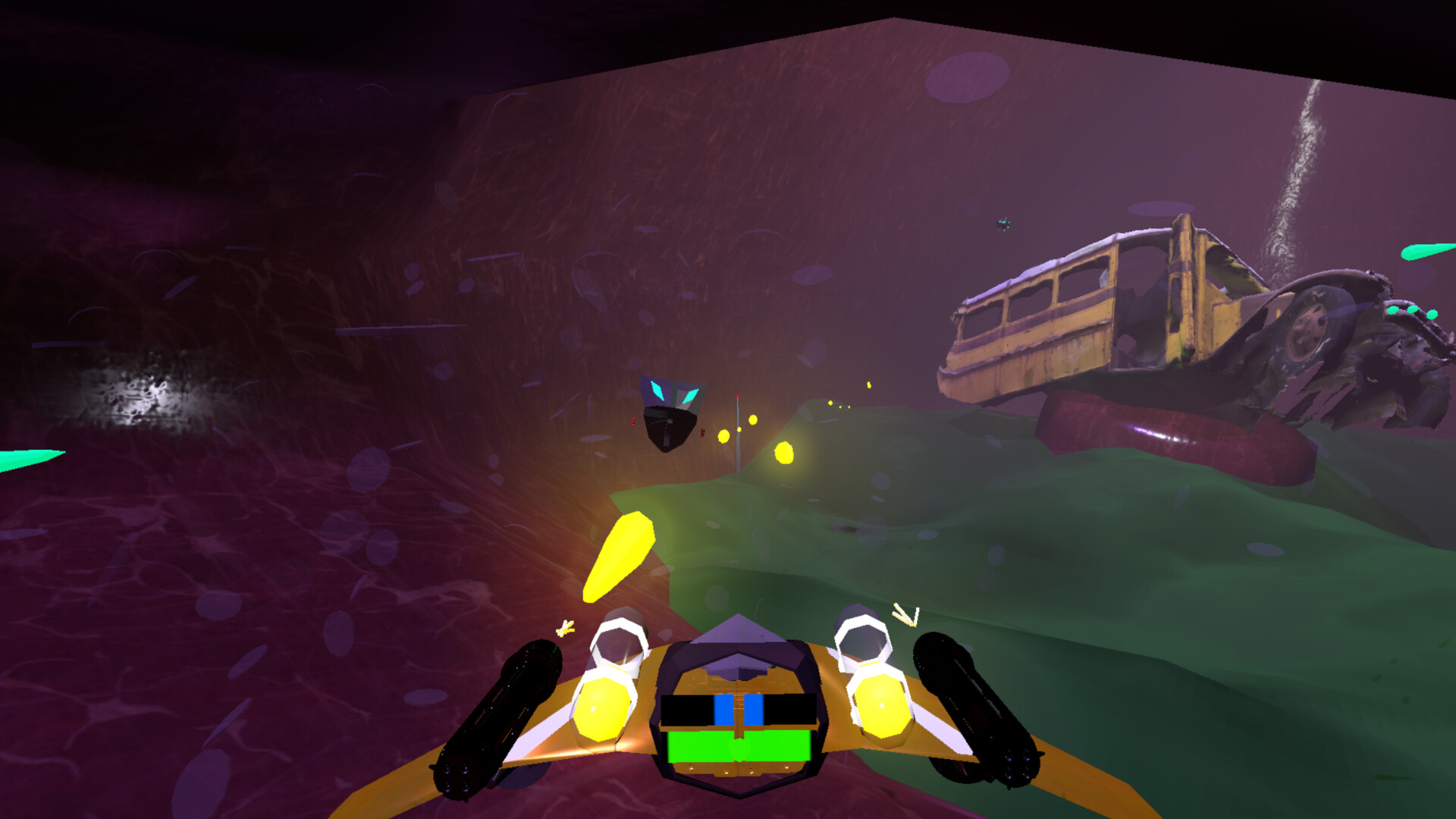 6DOF freedom to fly in any direction evoking classic games like Descent