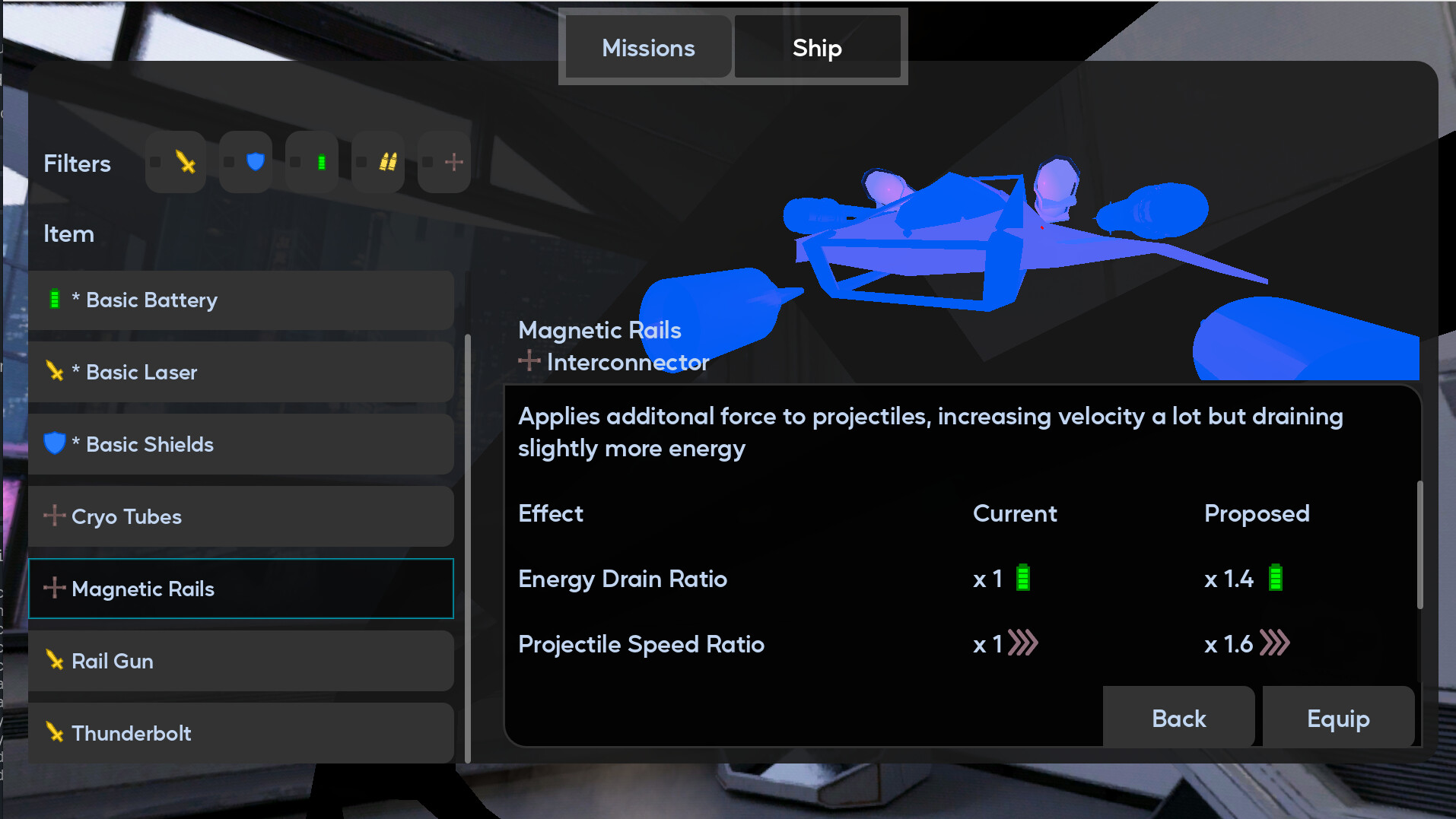 Upgradable ship and weapons