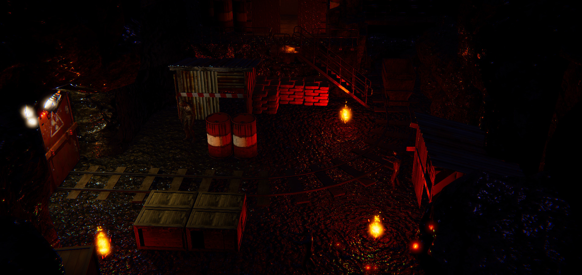 ・ Flares are your only distractions. Crates and barrels your only hiding spots.