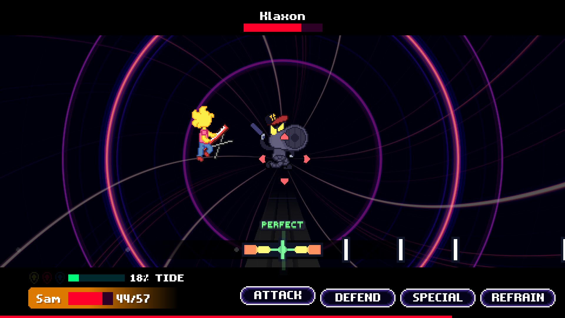 Battle to the beat in a unique, rhythm-based battle system